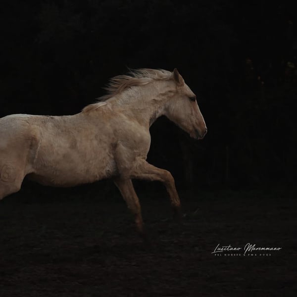 Outstanding stallion with a unique look Characteristics: - Breed: Lusitano - Sex: Stallion - Year of birth: 2024 - Color: Palomino - Height: Final height estimated 165 cm We are offering an impressive Lusitano stallion for sale that was born in 2024. This young Palomino not only impresses with his extraordinary beauty, but also with his potential as a show horse. This is also confirmed by his half-brother Fuego by Clémence Faivre. With a height of 165 cm, he presents an imposing appearance and promises a promising future in the show arena. His elegant appearance and friendly nature make him an ideal candidate for ambitious riders and breeders looking for a horse with exceptional potential. The stallion is already showing promising signs and is sure to turn heads at any event. His parents can be seen in the last pictures. I can send you more pictures and videos if you are interested.