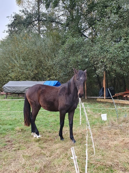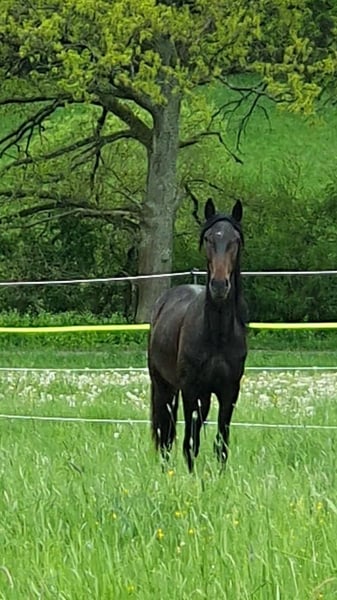 Hübscher, typvoller, gross werdender Gentleman (beherrscht schon Fohlen ABC), mit Top Abstammung (Vater: Gran Prix Pferd, Zucht: Dressage plus x Mutter: internat. Goldmedalliengewinnerin, auf Gangwerk 13,5Pkt.), schw.br., gesund, piropl. frei, nur in beste Hände abzugeben