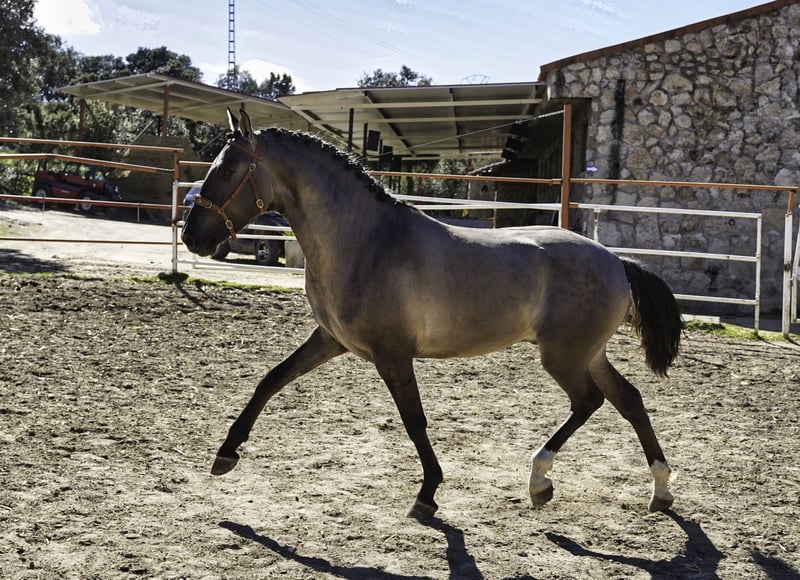 Exceptional Grullo Lusitano Stallion – 3 Years Old | 1.61 m A rare opportunity to acquire a truly unique Lusitano stallion with outstanding genetic value and exceptional character. This 3-year-old grullo stallion combines beauty, functionality, and proven bloodlines. Coming from the prestigious Alter Real lineage, he represents one of the most sought-after and historically influential lines in the Lusitano breed. He stands at 1.61 m with a harmonious conformation, strong topline, and correct limbs. His temperament is outstanding—easy, intelligent, and naturally cooperative—making him an ideal partner for both amateur and professional riders. Genetically, he is highly special, with a color and pedigree combination that is extremely rare in the market. Highlights: • ✔️ Grullo coat – rare and highly desirable • ✔️ 3 years old – perfect age to develop your own horse • ✔️ Height: 1.61 m • ✔️ Alter Real bloodline • ✔️ Excellent character and rideability • ✔️ Clean X-rays • ✔️ Piroplasmosis negative • ✔️ Strong potential for high-level Dressage and Working Equitation A magnificent stallion with the quality, mind, and movement to reach the top levels.