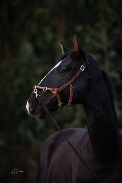 Impressive Lusitano warmblood stallion - Breed: Lusitano - Sex: Stallion - Year of birth: 2023 - Color: black - Height: 170 cm, final height estimated, currently 160 cm We are offering an impressive Lusitano warmblood stallion from the year of birth 2023 for sale. This magnificent black stallion not only impresses with his noble appearance, but also with his potential for dressage. Special lines such as Weltmeyer and MIAGUI DE CAIS combined in one horse. This young stallion already shows outstanding movements and a natural elegance that makes him an ideal partner for ambitious dressage riders. His friendly and attentive nature make him a great partner. He is currently being reared according to his age. I can send you more pictures and videos if you are interested.