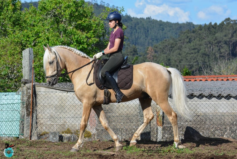 Lusitano Horse - Crossbred, with Passport. Noble and with a very good character. Started in Classical Dressage. Excellent movements, gaits, and positioning, making it very comfortable for the rider. Responds quickly to learning and has the power and endurance characteristic of Lusitano horses. Promises a bright future. Ideal for enjoying riding on a daily basis.