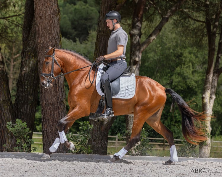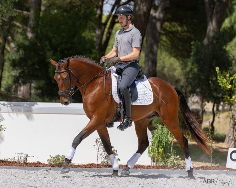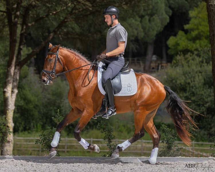 Ravel è un giovane stallone tipico e barocco, che ha potuto godere della sua infanzia in libertà all'interno di un gruppo sociale e che ora, a 4 anni, è stato montato con delicatezza. Dimostra di avere molto talento e un forte legame con le persone. Con tre ottimi passi di base e un meraviglioso galoppo, oltre a una buona bilanciatura, ha fatto rapidi progressi e ora padroneggia già i movimenti laterali e il galoppo esterno. È un partner affidabile e un cavallo molto amichevole, pronto a "fare il passo in più" per il suo umano, sia nel rettangolo di dressage che durante una passeggiata. Ravel cerca il suo umano per il resto della vita, per vivere insieme in una relazione di collaborazione. Ti senti chiamato? È nato nel nostro allevamento in Portogallo e vive qui con noi. Puoi trovarci su Instagram come Coudelaria Linda Oliveira o avere maggiori dettagli sul nostro sito web www.coudelaria-linda-oliveira.com Sarò felice di inviare ulteriori informazioni, video e radiografie tramite WhatsApp o email.