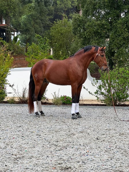 Ravel is a typified and baroque young stallion who was able to enjoy his childhood in a social group in freedom and has now been gently started under saddle at the age of 4. He shows great talent and is very people-oriented. With three very good basic gaits and a wonderful canter, as well as good balance, he has made rapid progress and now masters lateral movements and counter canter. He is a reliable partner and a very friendly horse who goes "the extra mile" for his person - whether in the dressage arena or on a trail ride. Ravel is looking for his person for the rest of his life to share a partnership through a life together. Do you feel addressed? He was born at our stud farm in Portugal and lives here with us. You can find us under Coudelaria Linda Oliveira on Instagram or more details on our website www.coudelaria-linda-oliveira.com I would be happy to send further information and videos as well as X-rays via WhatsApp or email.