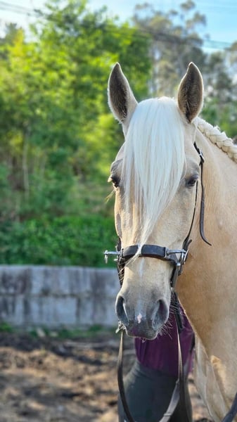 Lusitano Stallion, 6 years old, 15.7 hh, Pearl/Perlino, ridden (S/T/G), barefoot, EU passport + microchip, easy to load ⸻ Price: €9,000 negotiable • Breed: Lusitano (Warmblood type) • Gender: Stallion (not gelded) • Age: 6 years • Height: approximately 15.7 hh • Color: Pearl / Perlino (Perla) • Hooves: barefoot • Papers: EU equine passport available • Microchip: yes • Location: Pontevedra, Galicia (Spain – near Vigo) Training / Riding The stallion is ridden and walks, trots, and canters calmly. He has been introduced to classical dressage and demonstrates very good basic gaits along with a pleasant rideability. He learns quickly, responds delicately, and possesses the typical strength and endurance of Lusitanos – a horse with great potential for leisure riding and further dressage training. Temperament & Handling Very noble, friendly character and easy to handle. Loading / Transport Loading into a trailer has been done multiple times without any issues. Health Regularly dewormed, in excellent health. X-rays can be provided upon request. Notes / Sale The horse is currently located in Pontevedra, Spain. Viewing and test riding are possible locally in Pontevedra, Spain. Transport/delivery throughout Germany possible (professional horse transport, details upon request). Transport to Germany at buyer’s expense / upon agreement. As this is a stallion, it is preferred to place him in experienced hands. Price negotiable. Contact Please send a brief introduction (riding experience, stabling conditions, intended use) via message.