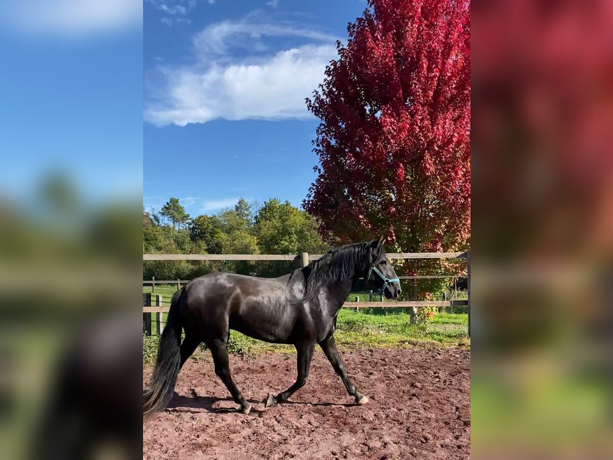 Small, handsome black-brown Lusitanian stallion
