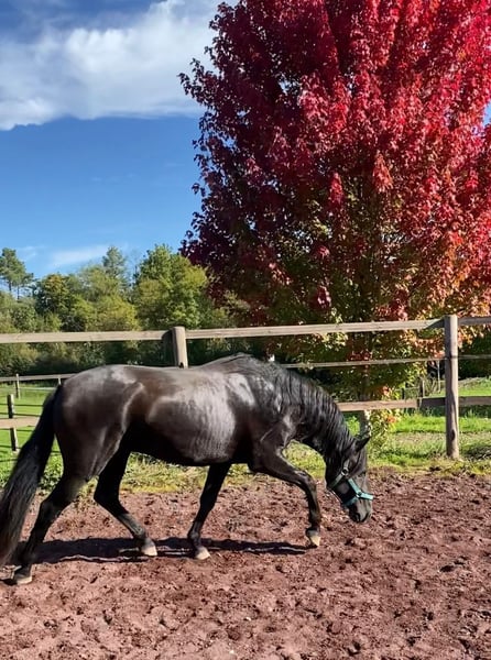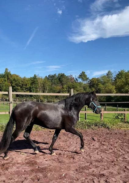 Queluz ist eine beinahe schwarze Perle, gut gebaut mit einem sehr ansprechenden Äusseren. Seine Abstammung kann sich sehen lassen, sie geht mütterlicherseits auf Xaquiro CIP zurück. Wenn Sie den ursprünglichen Typus des Lusitano lieben, sind Sie mit Queluz genau richtig. Er entspricht dem barocken, quadratischen Typus und nicht dem modernen eher im Rechteck gewachsenen Lusitano. Er zeigt drei korrekte Grundgangarten. Angeritten wurde er im Winter, sein Niveau ist das eines Anfängers. Er ist es gewohnt auf dem Viereck geritten zu werden, oder auch mal nach draussen zu gehen. Da wir keine Farben züchten, ist seine tolle, fast schwarze Farbe ohne Inzucht entstanden Vom Charakter her ist er sehr ruhig, so lässt er sich ohne Probleme mit dem Halfter von der Weide holen und an anderen Pferden (Hengsten, Stuten und Wallachen) vorbeiführen. Er ist, wie alle unsere Pferde, schmiede- und verladefromm.