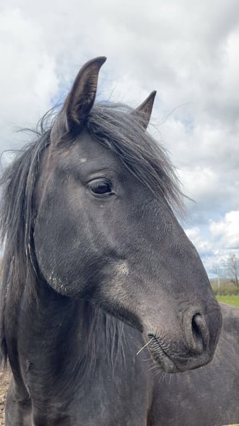 Queluz is an almost black gem, well-built with a very appealing appearance. His pedigree is impressive, tracing back maternally to Xaquiro CIP. If you love the original type of the Lusitano, then Queluz is the perfect choice. He represents the baroque, square type rather than the modern, more rectangular Lusitano. He demonstrates three correct basic gaits. He was backed in winter and has a beginner-level training. He is accustomed to being ridden in an arena or taken out for hack rides. Since we do not breed for color, his stunning, nearly black coat resulted from careful selection without inbreeding. In terms of temperament, he is very calm, making it easy to catch him from the pasture with a halter and lead him past other horses (stallions, mares, and geldings) without any issues. Like all our horses, he is farrier- and loading-friendly.