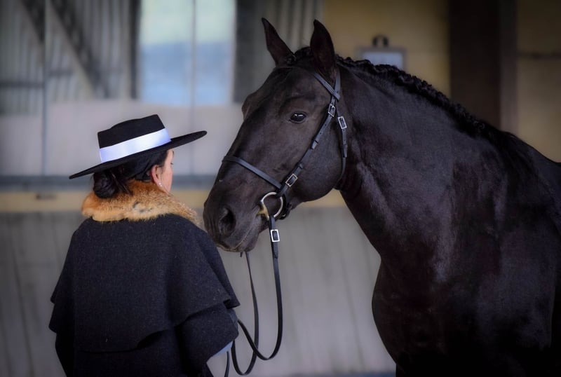 Magnifique Étalon Lusitanien Noir Maître d'École