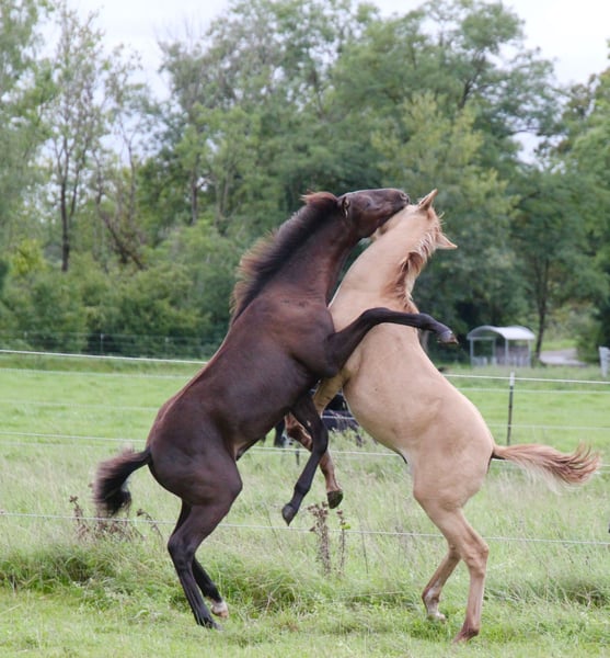 ⚜️Vamos-Asti geb. 31.03.2025⚜️ Vamos ist ein red dun, er trägt das Dun -Gene D/nd1. Diese Farbe ist in der Lusitanozucht sehr selten. Das Dun-Gen ist ein genetischer Aufhellungsfaktor bei Pferden, der die Fellfarbe verdünnt und gleichzeitig sogenannte Wildzeichnungen wie einen dunklen Aalstrich, Zebrastreifen an den Bein und ein Schulterkreuz hervorruft. Er ist im Offenstall aufgewachsen, mit 24 Std. Zugang zur großen Koppel. Er kennt es, auch mit seiner Mama in der Box zu sein. Er kennt das Fohlen-ABC, er wird selbstverständlich regelmäßig entwurmt und mit Mineralien versorgt. Er ist an allem interessiert, ist nervenstark und spielt sehr gerne mit seinem gleichaltrigen Freund Vegas. Vamos hat gute Bewegungen und ist typisch für seine Rasse sehr wendig und in gutem Gleichgewicht. Geschätztes Endmaß + - 1,58-1,60 m. Mutter Quā 1,52 m ist ebenfalls eine red dun. Sie hat sehr gute Bewegungen, und ist typisch für die Lusitanos sehr wendig. Quā wurde angeritten, dabei hat sie sich als außergewöhnlich nervenstarke und kooperative gezeigt. Ihren guten Charakter, hat sie beim anreiten ebenfalls gezeigte. Guter Charakter und „klar im Kopf“ist für mich neben Gesundheit, das wichtigste Merkmal was ein Pferd besitzt sollte. Der Papa I-Don Malagueño 1,64 m ist ein Hengst der sich international bewiesen hat. Sein Exterieur und auch seine Leistungsbereitschaft sind außergewöhnlich. Siegreich bis Prix St Georg und durch Sporterfolge voll zugelassen für Hengstbuch 1 Warmblut. Auch er hat einen sehr lieben und guten Charakter und den „will to please“. Ein Platz in einer professionellen Hengstaufzucht, mit der wir seit vielen Jahren zusammenarbeiten , ist für Vamos reserviert. Der Platz kann gerne übernommen werden. Anfang Oktober wird Vamos in diese Hengstaufzucht umziehen. Wir wünschen uns für Vamos einen super Platz, bei Menschen die Pferdeverstand und Erfahrung haben. Lusitano-via-Claudia.de