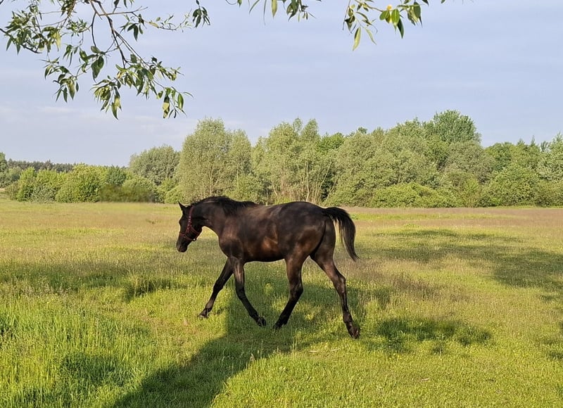 Colt PARYSS born: 04.03.2024 breed: Małopolska color: gray height at withers: 155 cm father: Agat młp (Barnaba – Armona by Decoration) mother: Preria młp (Dunaj - Panama by Tamerlan) PARYSS is a nice and large colt, of correct build with very good movement, brave, not flighty, and learns very quickly. A very good prospect for breeding and sports. Healthy, regularly trimmed and dewormed, taught to lift his legs and walk on a lead, tied in the stable. Raised in a pasture in a herd. Only to good hands, more information at phone number 696 471 626.
