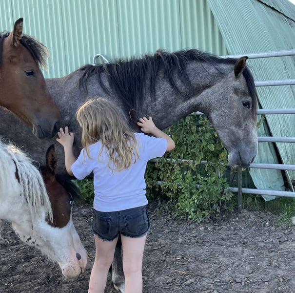 Queen ist eine sehr liebevolle menschenbezogene Stute, die einfach nur gefallen möchte. Sie liebt Kinder. Queen ist altersgerecht ausgebildet. Sie geht auf den Anhänger und läßt sich leicht verladen. Queen steht geduldig angebunden. Sie lässt sich gut spazieren führen. Queen ist leicht angeritten. Es haben Kinder auf ihr ohne Sattel gesessen und sind auf ihr durch die Halle geführt worden. Queen will gerne mitarbeiten und ist für alles bereit. Auf dem letzten Bild ist ihre Mutter Liv vom Kreiswald abgebildet. Eine unserer Stamm-Zuchtstuten. Queen s Vater ist Fantastico. Queen hat natürliche Töltveranlagung.