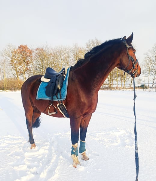 12 jähriger Mecklenburger Warmblutwallach sucht aufgrund von Reitsportaufgabe ein tolles neues Zuhause. In den letzten 7 Jahren Freizeit Dressur bis A/L Niveau geritten. Brav im Umgang und unter dem Sattel. Kein Beißen, Treten o.ä.. Verzeiht auch mal Reiterfehler. Geht brav ins Gelände, am liebsten mindestens zu zweit Barhufer, herdenverträglich (kennt sowohl Boxen-als auch Offenstallhaltung), schmiede -und verladefromm. Ein toller Partner, für den ich mir ein tolles Zuhause als gehobenes Freizeitpferd wünsche. Verkauf erfolgt mit sehr umfangreichen, hochwertigen Zubehör.