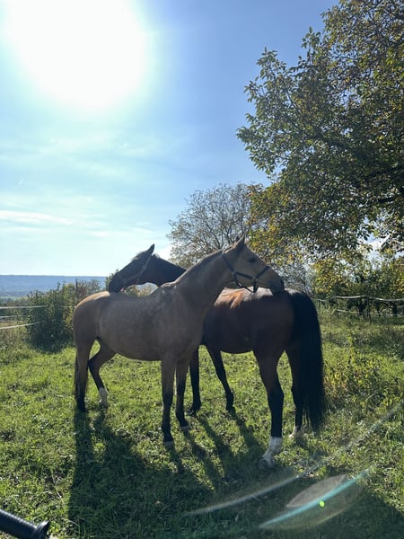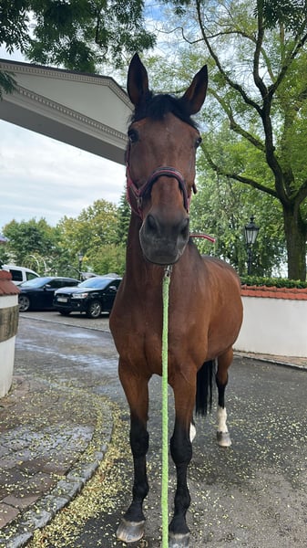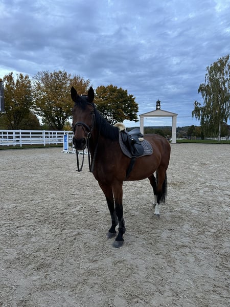 Absolutely a reliable horse seeking a new owner. With a heavy heart, I must part ways after seven years with my Mecklenburg Warmblood gelding Balu, as I will be moving abroad due to my studies. Balu is an absolute sweetheart, not only very well-behaved and uncomplicated in daily handling but also in training both indoors and in the arena. He is confident in the field as well, always loyal, and calmly navigates obstacles such as logs. He easily jumps over cavalettis and small jumps or works on ground poles. He gets along very well with other horses and is regularly turned out in small groups on pasture. In training and at competitions, we have competed up to class L in show jumping. He has also achieved successes in the advanced class. In the stable, he is attentive and responds well to voice commands and body language. Given his somewhat advanced age, I can very well imagine him as a therapy horse or for a rider who does not pursue competitive ambitions. He is in good health and is regularly seen by the physiotherapist, veterinarian, farrier, and saddle fitter. Ideally, he would thrive in a pasture-based environment with plenty of turnout and a caring person who enjoys riding, hacking, lunging, and ground work. He is familiar with the lunging system and also the treadmill. Additionally, Balu is loading-friendly. Halter, grooming supplies, blankets, and boots, etc., will be included. The price is secondary; my top priority is that he finds a good, responsible home where he can enjoy his retirement. Serious interested parties who want to give him a loving home and enjoy working with him are very welcome. If you have questions, such as requesting videos or arranging a viewing appointment, please feel free to contact me.