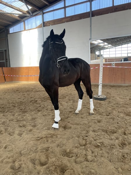 Se ofrece a la venta un prometedor potro de 3 años, hijo de So Unique y con madre Sancisco. Es un joven con mucho potencial, criado en una pequeña y privada ganadería, que ya demostró su calidad como potro, recibiendo la distinción de cría de élite. El potro ha crecido en un grupo de yeguas y está familiarizado con otros caballos, diferentes vehículos, animales y niños. En verano, fue montado con suavidad y luego pudo pasar varios meses en la pradera para seguir desarrollándose tranquilamente. Ahora está de nuevo en establo y listo para continuar su entrenamiento. Su carácter equilibrado y amistoso lo convierte en un compañero muy agradable en el día a día. Stanford destaca por sus movimientos básicos de alta calidad y mucha estabilidad. Desde que fue iniciado en la monta, mostró una disposición natural para la recolección. También conoce el salto en libertad, demostrando valentía y claridad en la vista. Por una cuestión estética —una acumulación de líquido sobre la articulación del tarso, resultado de un tratamiento veterinario por un quiste sinovial— se vende a un precio considerablemente por debajo de su valor real. La articulación fue examinada mediante ecografía y no presenta anomalías. Se cuenta con el informe veterinario. Esto no afecta su rendimiento deportivo, siendo solo un cambio visual. Lo vendemos con mucho pesar debido a la falta de tiempo por un aumento familiar y la cría de otros caballos propios. Un caballo ideal para jinetes que buscan un joven talentoso, con mucho corazón, calidad y excelente carácter. *Los dientes están recién revisados *Sin herraduras (a pelo) Lo mejor es venir a verlo en persona. No dudes en llamarnos al 0162/2399140.