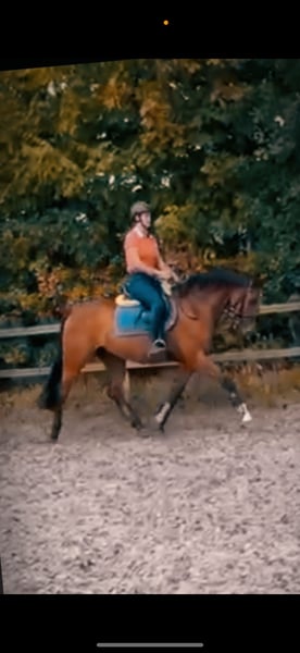 Dieser bildschöne 4-jährige Wallach überzeugt durch seine hervorragende Abstammung – gezogen über Balout du Roet x Lancer II – sowie durch seinen ehrlichen, ausgeglichenen Charakter. Er zeigt sich im täglichen Umgang wie auch unter dem Sattel stets super brav, unkompliziert und zuverlässig. Für sein junges Alter ist er erstaunlich ruhig und nervenstark – geht bereits alleine ins Gelände und zeigt sich dort unerschrocken und gelassen. Unter dem Reiter arbeitet er motiviert mit, möchte immer alles richtig machen und hat dabei keinerlei böse Absichten. Erste Sprünge unter dem Sattel meistert er mit Freude und Übersicht – ein Nachwuchspferd mit viel Potenzial für Sport und Freizeit gleichermaßen. Ein herzensgutes Pferd mit tollem Charakter und bester Einstellung – ideal für Reiter, die einen ehrlichen, talentierten Partner fürs Leben suchen.