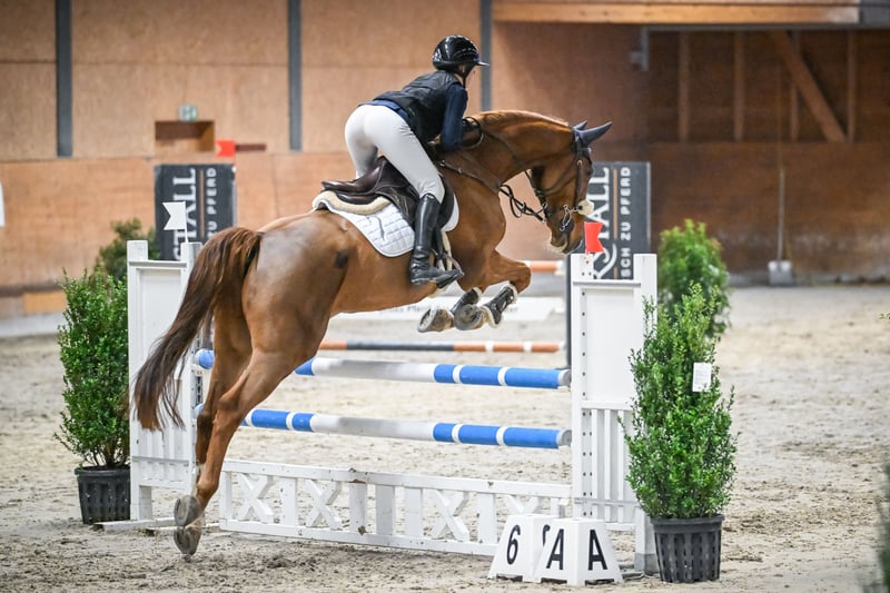 For sale: Mecklenburg Warmblood gelding – the perfect partner for show jumping or leisure riding! We are offering an elegant Mecklenburg Warmblood gelding, born in 2019. With his gentle expression and a height of 172 cm, he is both a striking and athletic presence. Kewan is a sporty, modern-type horse. He made his first jumps under saddle in June and has already achieved placings up to 110 cm this season. Very easy to ride, with a large, expressive canter and a soft mouth. His cooperative, friendly nature, willingness to work, and great potential make him a true dream horse for sport and leisure. He loves learning new things and enjoys being challenged, but due to his still somewhat insecure and shy nature, he is not suitable for beginners. Good X-rays and health certificate available! If you are interested and would like more information, please feel free to contact me. Visits can be arranged by appointment.
