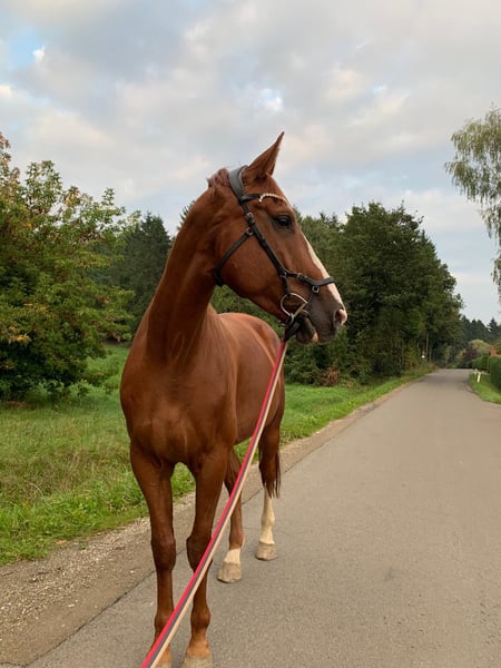 Cupido de Coeur ist ein echter Herzensbrecher – ein wunderschöner Wallach mit tollem Charakter und einem liebevollen Wesen. Seit über einem Jahr ist er in unserem Besitz und hat uns in dieser Zeit mit seiner ehrlichen, verschmusten Art jeden Tag Freude bereitet. Im täglichen Umgang zeigt sich Cupido stets brav, menschenbezogen und unkompliziert – egal ob beim Putzen, Hufschmied oder Verladen, er bleibt immer entspannt und freundlich. Auch beim Ausreiten in der Gruppe ist er unerschrocken. Im Training zeigt sich jedoch, dass Cupido einen erfahrenen, durchsetzungsfähigen Reiter an seiner Seite braucht, der ihm klare Linien vorgibt und ihn weiter fördert. Das vergangene Jahr wurde er von unserer 12-jährigen Tochter geritten. Sie hat ihn liebevoll betreut, aber man merkt deutlich, dass Cupido schnell zwischen einem jungen Reiter und einem Trainer unterscheidet – er testet gerne mal aus und benötigt daher eine strenge Hand. Er wurde bereits einmal auf einem Turnier vorgestellt, allerdings fehlt ihm hier noch etwas Routine und Gelassenheit, um sein Potenzial auszuschöpfen. Die Entscheidung, Cupido abzugeben, fällt uns unendlich schwer, da er uns sehr ans Herz gewachsen ist. Er hat unser Vertrauen und unsere Zuneigung im Sturm erobert – umso wichtiger ist es uns, dass er in wirklich gute, liebevolle und erfahrene Hände kommt, in denen er weiter gefördert und genauso geschätzt wird, wie er es verdient. Cupido ist ein tolles Pferd für jemanden, der Freude an der weiteren Ausbildung hat und ein ehrliches, liebenswertes Pferd mit großem Herz sucht. 💫 Stichpunkte: • Geboren 2018 • Lieb und verschmust im Umgang • Unerschrocken und gelassen im Gelände • Brav beim Schmied und Verladen • Für erfahrene Reiter geeignet • Einmal turniererprobt, mit Potenzial für mehr • Wird nur in beste Hände abgegeben