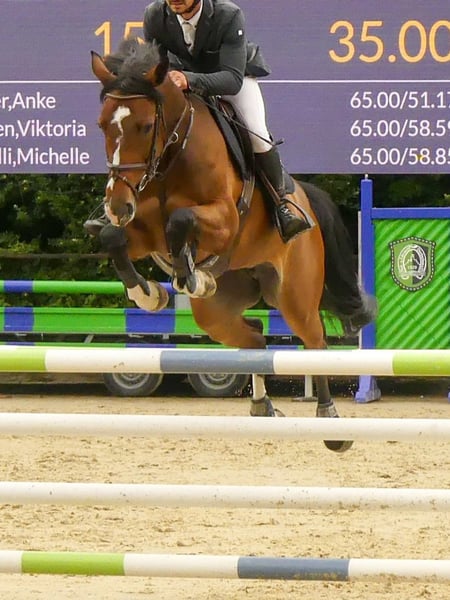 Very pretty 10 yo mare for sale, ~166 cm. Competition experience up to M* (120-125) with placings. Potential for more with time and work. Despite her age, still a little green at the show. Super characters to deal with: friendly, kind, easy in transports, suitable for children, go hiking alone. Always healthy. Good vet check done in 12/24 with X-rays.