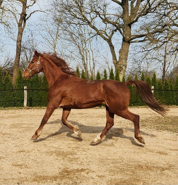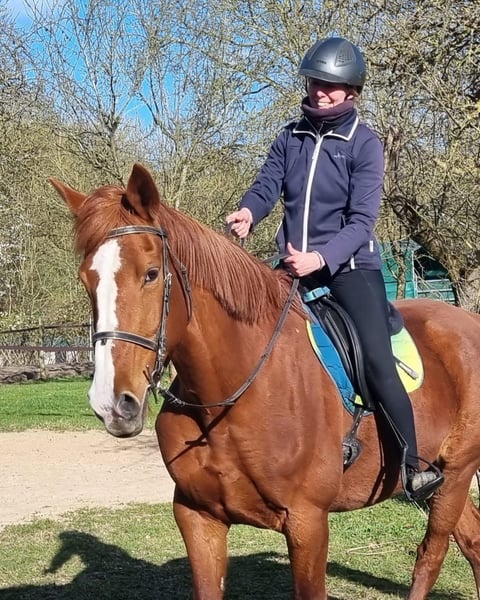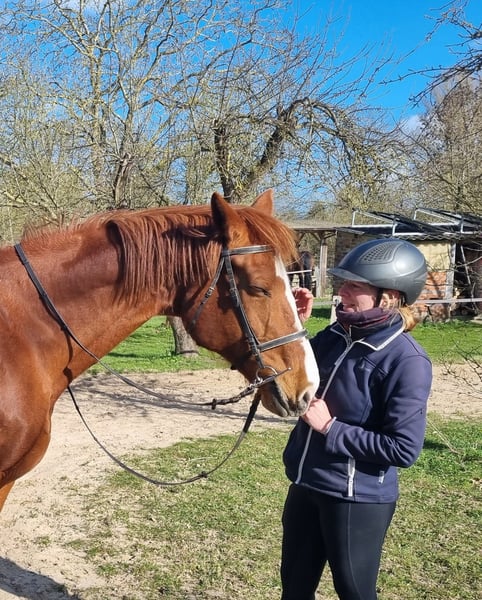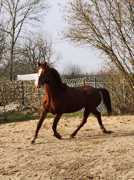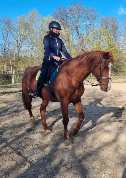 We are looking for a new home for Carla. She is very well-trained and has no bad habits — not even at the slightest. She is very affectionate and gentle. At the age of five, she was backed and ridden for five years. Afterward, she had a foal and has been standing idle since then. We are now starting to ride her again. She enjoys riding, is very sensitive to aids, and is always well-behaved. Having come from an agricultural operation, she is familiar with tractors, cows, dogs, children, and ponies. She has not been extensively ridden out yet, which we would like to see happen. She is suitable for recreational riding in all disciplines. She only needs to regain some muscle, then she will be invaluable due to her sweet nature. She is fully rideable — no chronic illnesses, old injuries, or similar issues. An unspoiled horse. Carla is being sold due to the owner’s decision to give up horsekeeping.