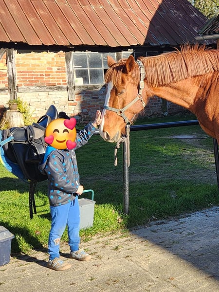 Wir suchen für Carla ein neues Zuhause. Sie ist sehr gut erzogen und hat keine Unarten - nicht einmal im Ansatz. Sie ist menschenbezogen und sehr lieb. Mit 5 wurde sie eingeritten und dann 5 Jahre geritten. Dann bekam sie ein Fohlen und stand seit dem. Nun fangen wir wieder mit ihr an. Das Reiten macht ihr Spaß, sie ist sehr fein an den Hilfen und immer artig. Da sie von einem landwirtschaftlichen Betrieb kommt kennt sie Traktoren, Kühe, Hunde, Kinder und Ponys. Viel ausgeritten wurde mit ihr noch nicht, das würden wir uns für sie wünschen. Sie eignet sich zum Freizeitreiten in allen Disziplinen. Sie muss nur wieder Muskeln aufbauen, dann ist sie aufgrund ihres lieben Charakters unbezahlbar. Sie ist voll reitbar - keine chronischen Erkrankungen, keine alten Verletzungen oder ähnliches. Ein unverbrauchtes Pferd. Carla wird wegen Aufgabe der Pferdehaltung verkauft.