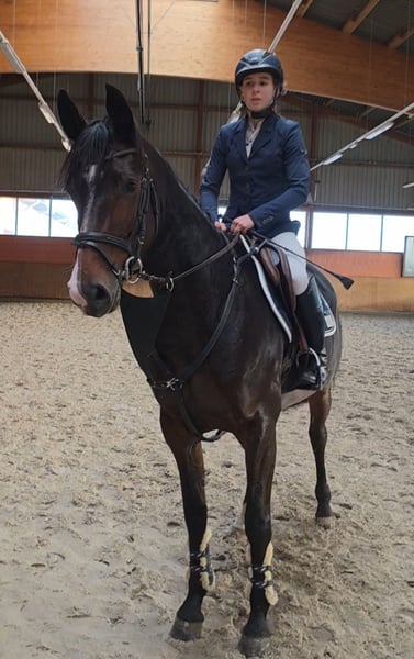 Amara ist eine hübsche Stute mit guter Rittigkeit und viel Springtalent. Sie hat ansprechende Bewegungen und zeigt sich mit viel Spaß am Springen. Amara ist sehr ehrlich, mutig und ehrgeizig am Sprung, dazu auch dressurmäßig schön zu reiten . Sie ist mit einem Mädchen Springpferde A ** platziert und hat Vermögen für deutlich mehr ( M/S*). Sie hat durchaus Energie ist dabei aber gut händelbar und immer lieb. Amara ist auch im Umgang sehr abgeklärt und unkompliziert, auch auf dem Turnier. Besonders cool und gern geht sie ins Gelände. Sie hat auch schon Erfahrung in Geländepferdeprüfungen gesammelt. Auch allerlei Späße die Mädchen so treiben kennt sie. ZB ohne Sattel ins Wasser reiten, nur auf Stallhalter, Geschicklichjeitsparcours etc. Einfach ein Pferd, wie man es sich nur wünschen kann. 5j Mecklenb. St. v. , 1.65m , v. Lenin (Light On) x Sandro Star Guter Röntgentüv und Klinische Aku vorhanden Video: https://youtu.be/PdkU6Xl70NY?si=nAtNYoQp9wi1LHhN Noch mehr Fotos, Videos und kleine Einblicke in den Alltag unserer Pferde gibt’s auf Instagram: [maresi_lange]. Schauen Sie gern vorbei und lernen Sie unsere Vierbeiner schon vorab ein wenig kennen. You can find more photos, videos and little insights into the everyday life of our horses on Instagram: [maresi_lange]. Feel free to take a look and get to know our horses a bit better in advance. Weitere Pferde auf meiner Homepage MaresiLange.de oder auf Anfrage. Die Beschreibung des Pferdes beruht auf subjektiven Eindrücken und Erfahrungen unsererseits und ist keine Beschaffenheitsvereinbarung und Zusicherung von Eigenschaften. Probereiten erfolgt auf eigene Gefahr. Verkauf erfolgt im Auftrag. Für das Vorstellen/Probereiten des Pferdesk erlauben wir uns, eine Aufwandsentschädigung in Höhe von 30 Euro zu berechnen. Diese wird natürlich bei Kauf des Pferdes verrechnet.