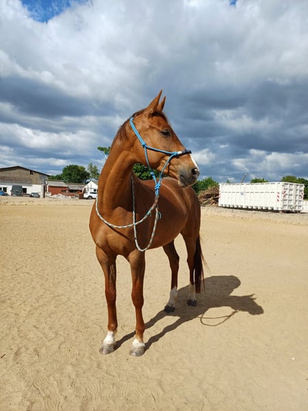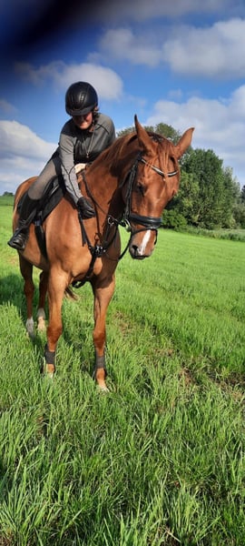 Piękna klacz fuksjowa Bardzo spokojna, także na terenach Z dużym potencjałem do ujeżdżenia i skoków Zdrowa.