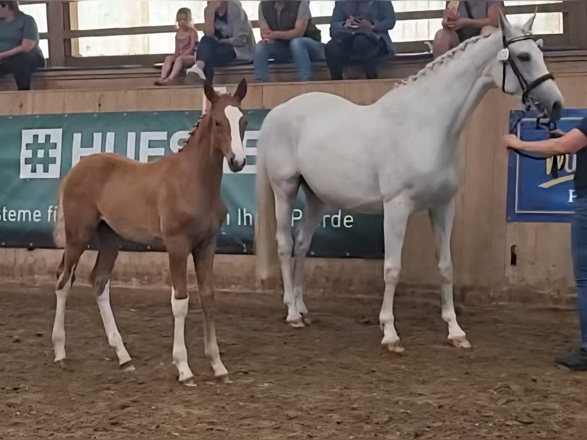 **Verkaufsanzeige: Mecklenburger Warmblut Hengst** Zum Verkauf steht ein vielversprechender Mecklenburger Warmblut Hengst, geboren im Jahr 2025. Dieser elegante Fuchs begeistert nicht nur durch sein auffälliges Erscheinungsbild, sondern auch durch sein Potenzial fürs Viereck. **Merkmale:** - Rasse: Mecklenburger Warmblut - Geschlecht: Hengst - Geburtsjahr: 2025 - Farbe: Fuchs - Eignung: Dressur Unser Hengst zeichnet sich durch seinen freundlichen Charakter aus. Mit seinem ausgeglichenen Temperament und seiner Bewegungsqualität ist er der ideale Partner für ambitionierte Reiter. Bei Interesse oder weiteren Fragen freuen wir uns über Ihre Nachricht. Gerne vereinbaren wir einen Besichtigungstermin, damit Sie sich von seinem Potenzial persönlich überzeugen können. Wir freuen uns auf Ihre Kontaktaufnahme!