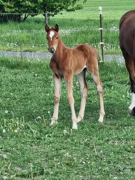 Elite Premium Foal 04/2025 🧡 Chestnut | Sport-oriented pedigree with jumping emphasis This young stallion impresses with a strong build, long legs, and a modern appearance. He features a powerful hind leg and an uphill, elastic canter with plenty of expression — ideal qualities for competitive show jumping. Awarded the Elite Foal Premium. Raised in a herd environment, well-socialized, and easy to handle. Videos and further information available upon request via private message.