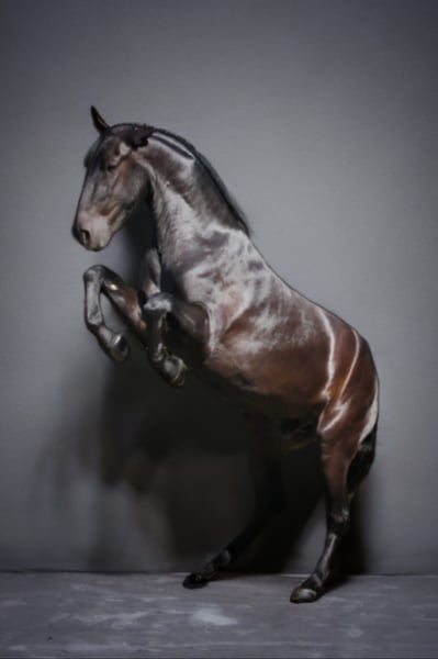 An outstanding Menorquin gelding is now available for a discerning, lifelong home where partnership and wellbeing come first. This exceptional 5.5-year-old, approximately 168 cm tall, comes from top bloodlines in Menorca, Spain, and has been professionally trained by world champion Daantje Bos and Kristien Rutten since May 2024. He is trained in classical dressage, liberty and bridleless riding, in-hand work, lunging, tricks, jumping, horseback archery, and hacks out safely in all environments. He shows a lot of potential for the higher classical dressage movements. In his training we've started with teaching him the first steps of piaffe. Calm, confident, and versatile, he’s performed at shows and travels easily, thriving on variety and intellectual challenge. Handled with the utmost care, always bitless and barefoot with top hoof health, this sensitive yet courageous gelding is ready for a knowledgeable, experienced rider who shares the "pro horse" philosophy and seeks an irreplaceable partner—not a commercial prospect. He receives regular dental care, has no known health issues, adjusts to both 24/7 turnout and nightly stabling, and is slightly dominant in a group. Only serious inquiries for a five-star home; price on request. Visit our stable by appointment for an introduction and lesson to ensure the ideal match