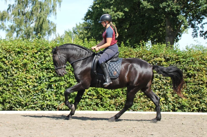 Ein herausragender Menorquin-Wallach steht nun für ein anspruchsvolles, lebenslanges Zuhause zur Verfügung, in dem Partnerschaft und Wohlbefinden an erster Stelle stehen. Dieser außergewöhnliche 5,5 Jahre alte Wallach, etwa 168 cm groß, stammt aus erstklassigen Blutlinien auf Menorca, Spanien, und wurde seit Mai 2024 professionell von Weltmeisterin Daantje Bos und Kristien Rutten ausgebildet. Er ist in klassischer Dressur, Freiarbeit und zügelunabhängigem Reiten, Handarbeit, Longieren, Tricks, Springen, Pferdebogenschießen ausgebildet und geht sicher in allen Umgebungen ins Gelände. Ruhig, selbstbewusst und vielseitig hat er bereits auf Turnieren performt und reist problemlos, wobei er von Abwechslung und intellektuellen Herausforderungen profitiert. Er wird mit größter Sorgfalt behandelt, ist stets gebisslos und barfuß mit bester Hufgesundheit. Dieser sensible, aber mutige Wallach ist bereit für einen wissenden, erfahrenen Reiter, der die "Pro-Pferd"-Philosophie teilt und einen unersetzlichen Partner sucht – keinen kommerziellen Verkaufsartikel. Er erhält regelmäßige zahnärztliche Pflege, hat keine bekannten gesundheitlichen Probleme, gewöhnt sich sowohl an 24/7 Weidegang als auch an nächtliche Boxenhaltung und ist in einer Gruppe leicht dominant. Nur ernsthafte Anfragen für ein Fünf-Sterne-Zuhause; Preis auf Anfrage (zwischen 20-30K). Besuchen Sie unseren Stall nach Vereinbarung für eine Einführung und eine Unterrichtsstunde, um die ideale Übereinstimmung sicherzustellen.
