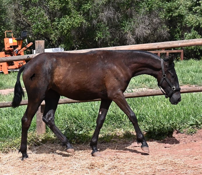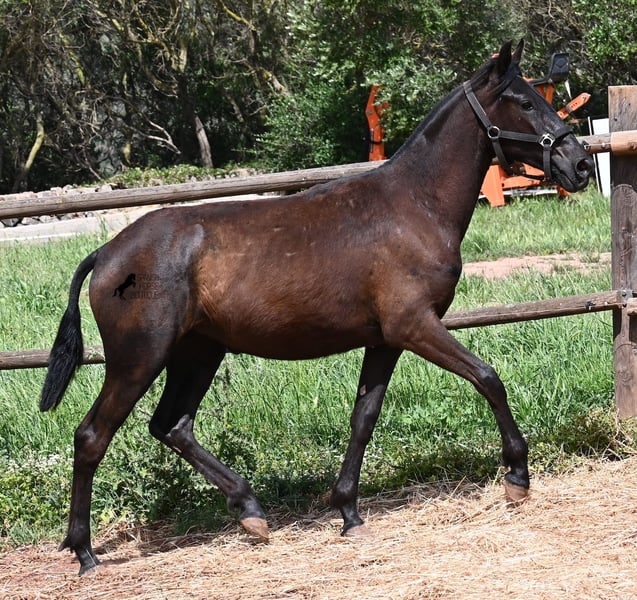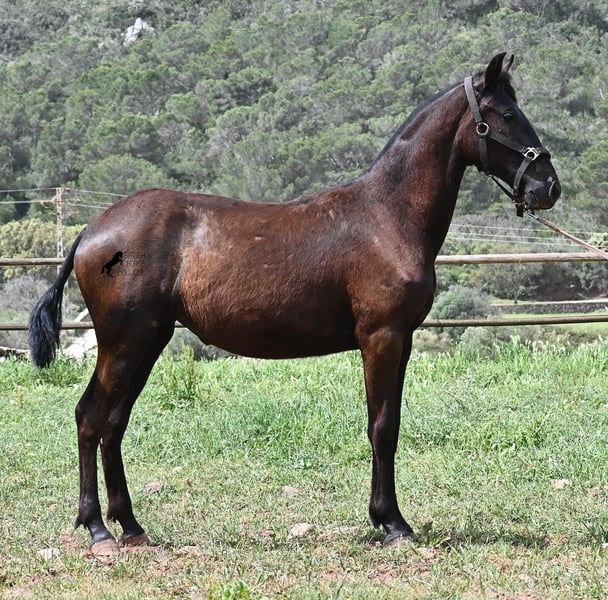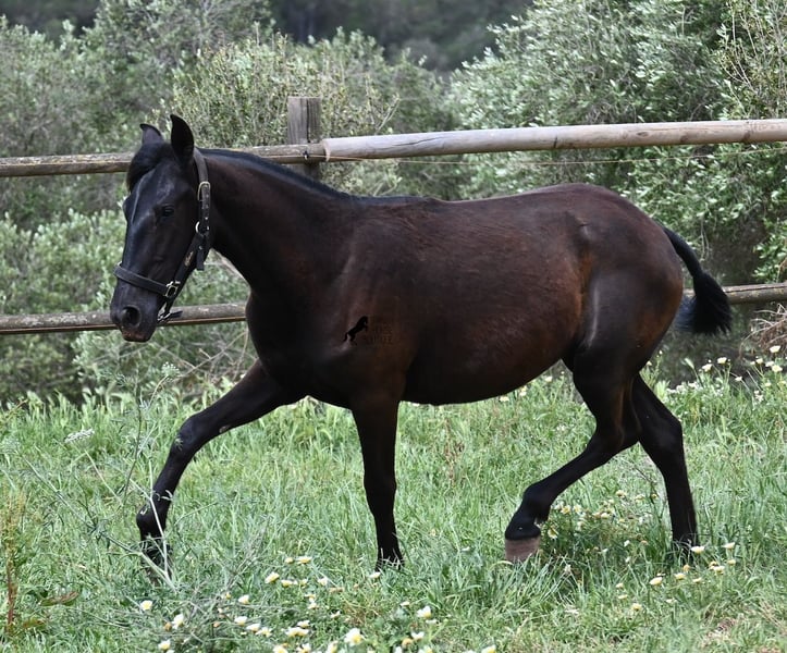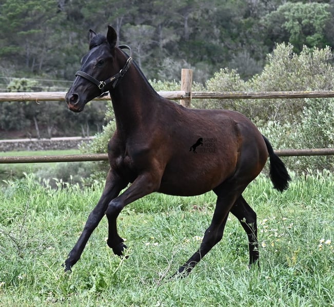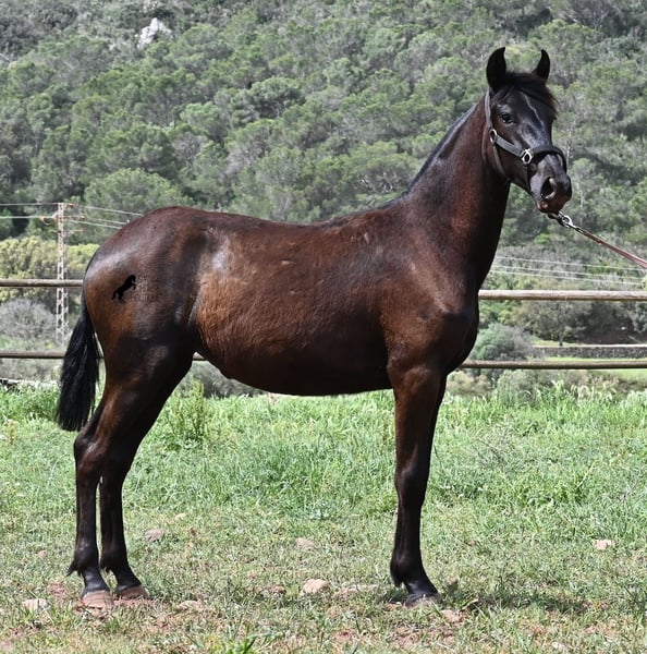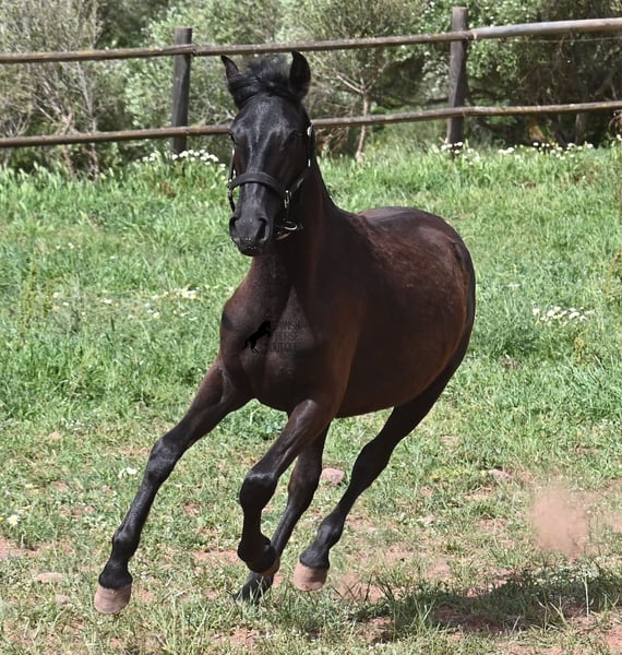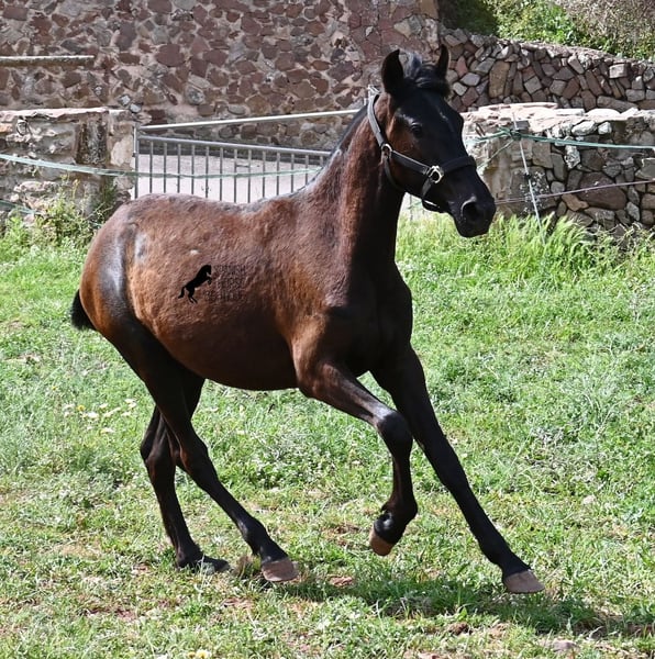 Diese 2025 geborene, reinrassige Menorquinstute, ist eine ganz entzückende, junge Dame! Im Umgang ist sie ganz fein, zutraulich und will wirklich alles richtig machen. Sie wird komplett schwarz (das Tiefschwarz kommt bei Menorquin manchmal erst später) und ist sehr elegant gebaut, mit einem feinen und femininen Köpfchen, sowie den typischen Sichelohren des Menorquin. Ihr Papa ist ein herausragender Hengst, denn 3 (!) seiner Nachfahren wurden RASSECHAMPION! Also hat diese Stute ganz edle Geschwister und auch in der Mutterlinie finden wir Subchampions und einen Rassechampion. Die Linien, die sie in sich trägt, zeichnen sich durch ausdauernde, agile, widerstandsfähige Pferde aus. Somit wird sie später für viele Sparten interessant, wie auch die Working Equitation, Western oder mit diesem lieben Charakter, als feines Freizeit- und/oder Familienpferd. Sie wird nicht allzu groß werden, um die 156cm und kompakt bleiben. Sie lebt in der Herde in 24h Robusthaltung, ist daher bestens sozialisiert und abgehärtet, dank des rauen Klimas auf Menorca. Man sieht auch an kleinen Macken, dass sich die älteren Stuten in der Herde gut um die Erziehung kümmern. Aktuell steht sie auf Menorca! Videos und Abstammung gerne auf Anfrage. Gerne organisiere ich vor Ort eine AKU, Transport oder auch ihre Reise, sollten Sie persönlich zum Anschauen kommen. Details dazu gerne auf meiner Seite oder im Gespräch. Saludos aus Spanien
