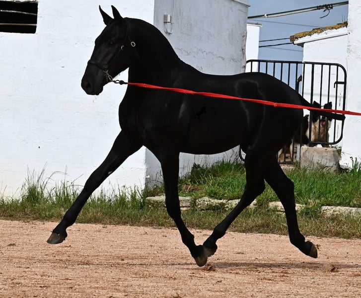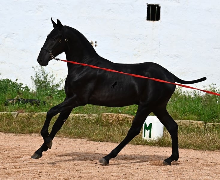 This 2024-born, purebred Menorquin colt is already a real eye-catcher! Unbelievably elegant for his age and his charisma is immediately captivating. His movement is also remarkable, as he not only has a beautiful suspension phase in the trot and an upward tendency in the canter, but he is also very supple and flexible. This makes him interesting for Working Equitation later on, although he will surely be happy in many areas - even as a pure leisure horse :) He has already been presented at a breeding show and is familiar with lunging using a presentation halter (a requirement of the breeding show), loading, and being in new places, giving him a very extensive foundation from the foal ABC. His pedigree is also impressive, as one grandfather is one of the only 3 ELITE stallions of the breed, and his other grandfather is a RECOMENADO stallion who has celebrated great successes in dressage. He lives in a robust environment within a stallion herd but is also accustomed to a box. His expected final height is around 163 cm. If you wish to pick him up later, a rearing place can be organized for him. Videos and pedigree available upon request. His location is Menorca. I would be happy to organize a foal inspection, transport, or your trip should you wish to come and see him in person. Details can be found on my page or in conversation. Greetings from Spain!