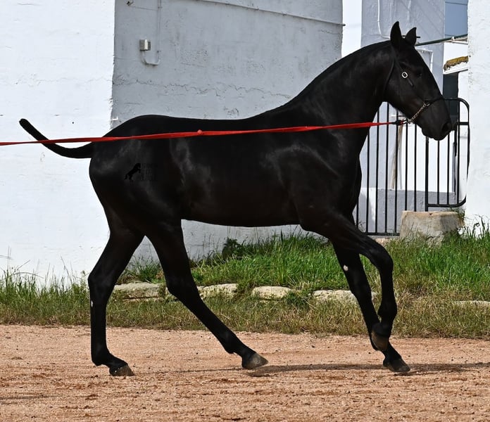Ce poulain Menorquin, né en 2024, est déjà un véritable coup de cœur ! D'une élégance incroyable pour son âge, il attire immédiatement l'attention. Son mouvement est également remarquable, car il possède non seulement une belle phase de suspension au trot et une tendance à l'élévation au galop, mais il est aussi très souple et flexible. Cela le rendra intéressant plus tard pour l'équitation de travail, bien qu'il s'épanouisse certainement dans de nombreux domaines, y compris en tant que cheval de loisir pur :) Il a déjà été présenté lors d'une exposition de chevaux et connaît donc le travail en longe avec un licol de présentation (exigence de l'exposition), le chargement, et il s'habitue à de nouveaux environnements, ce qui lui a permis d'acquérir une base solide dès son jeune âge. Son pedigree est également impressionnant, car l'un de ses grands-pères est l'un des trois étalons ÉLITE de la race, et son autre grand-père est un étalon RECOMENADO qui connaît de grands succès en dressage. Il vit en troupeau dans un système de détention robuste, mais il connaît aussi la vie en box. Sa taille finale attendue est d'environ 163 cm. Si vous souhaitez l'acquérir plus tard, un emplacement pour son élevage peut être organisé. Des vidéos et des informations sur son pedigree sont disponibles sur demande. Son emplacement est à Minorque. Je peux également organiser sur place une visite de poulain, le transport ou votre voyage si vous souhaitez venir le voir personnellement. Pour plus de détails, n'hésitez pas à consulter ma page ou à en discuter. Salutations d'Espagne.