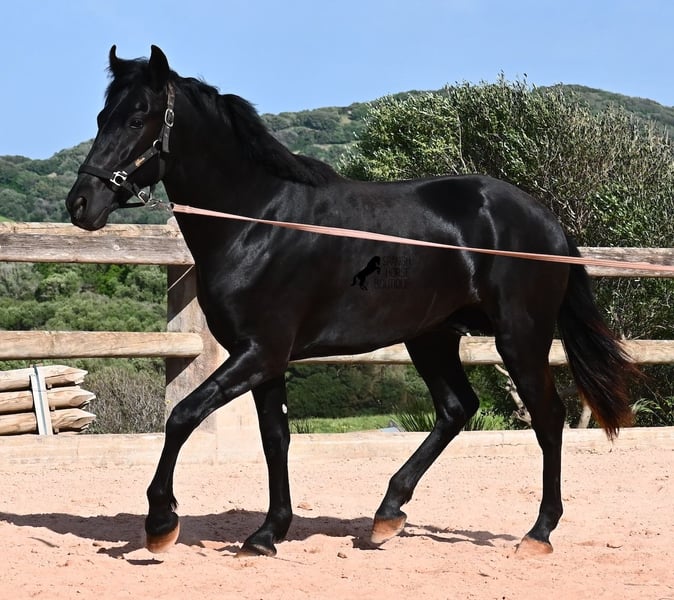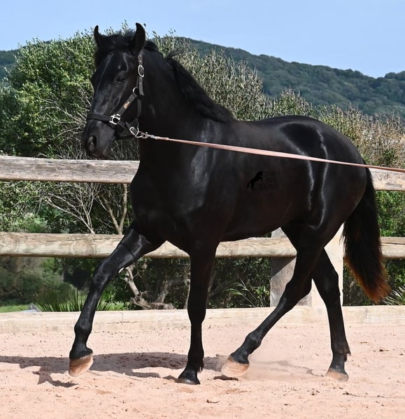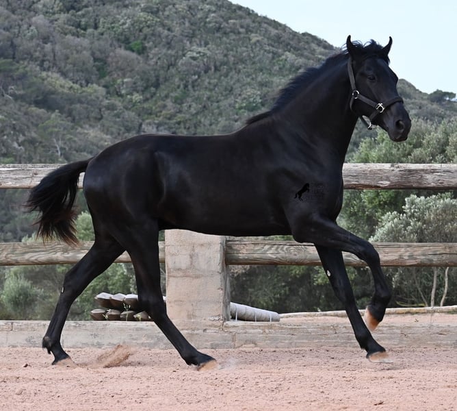 Este semental Menorquín de pura raza nacido en 2024 es un joven elegante con mucho potencial. Alegre, como se espera de un potro joven, confiado con las personas y un diamante en bruto que podrá brillar en muchas disciplinas en el futuro. Tiene movimientos muy correctos, es muy ágil, fuerte en la parte trasera y armonioso en su estructura. Por ello, será un candidato ideal para la doma clásica, la equitación de trabajo, el concurso completo y, por supuesto, como caballo de ocio, ¡seguro que le proporcionará mucha alegría! Actualmente, se le está enseñando a trabajar en la cuerda con cabezada de establo, para construir lentamente una base de trabajo y pasar más tiempo con él. Aparte de eso, disfruta de la vida de potro en la manada, pasa 24 horas en un paddock resistente sobre suelos duros y recorre muchos kilómetros jugando con sus amigos. Es robusto, tiene buena calidad de casco y patas claras. En la manada, busca el contacto con las personas y ya se vuelve muy cariñoso. Su marca negra también es excelente, ya que incluso aparecen puntos de leopardo, a pesar de estar siempre al aire libre y expuesto al sol. Su padre es un semental destacado, ¡tres de sus descendientes han sido campeones de raza! La madre aporta sangre de campeona en su linaje, y en combinación, seguramente también será interesante para criadores en el futuro. Ya mide unos impresionantes 1,61 m y, además de que todavía crecerá varios centímetros, su exterior será aún más barroco. Es manejable con cabezada, muy bien educado en el trato, sin comportamientos de semental, y siempre listo para emprender el gran viaje, ¡esperamos que sea contigo! Para quienes no puedan tener un semental, existe la opción de castración en el lugar. Actualmente, está en Menorca. Videos y pedigrí disponibles bajo solicitud. Con gusto puedo organizar en el lugar una revisión veterinaria, castración, transporte o incluso tu viaje, si deseas venir a verlo en persona. Para más detalles, visita mi página o contacta conmigo. ¡Saludos desde España!