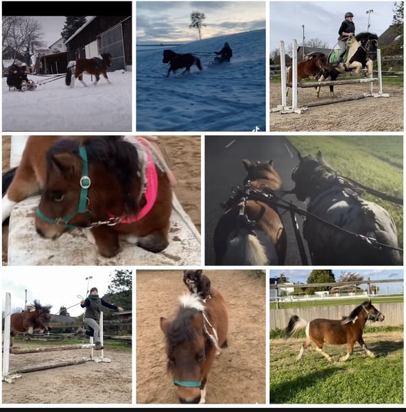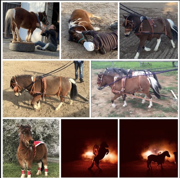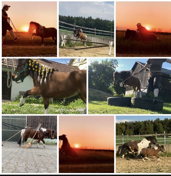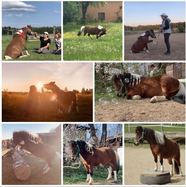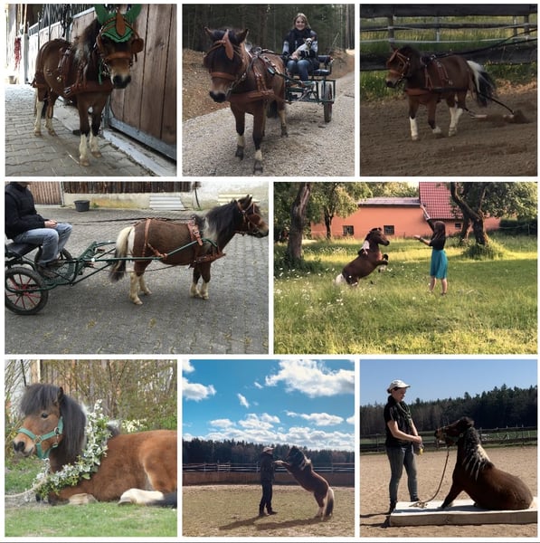 Wegen nicht Zahlung, sucht die kleine doch noch ein neues Zuhause. Aufgrund gesundheitlichen Gründen meinerseits, gebe ich nun die eigene Pferdehaltung auf Deswegen steht meine Minishetty Stute nun zum Verkauf. Lupi ist eine 12 Jahre alte, ca. 0,86m große Minishetty Scheckstute. Seit fast 12 Jahren bei mir. Kennt so ziemlich alles was man mit Pferd machen kann. Sie ist ein totales Zirkuspony. Sie ist eher der gemütliche Typ, kann aber je nach Laune auch schon mal Gas geben. Sie ist 1-&2- spännig gefahren, läuft außerdem vorm Schlitten, kennt Reitplatz abziehen, läuft im Gelände mit als Handpferd. Auch am Fahrrad läuft sie super mit. Kennt natürlich langzügel Arbeit überall & lässt sich auch brav longieren. Freispringen & oder an der Hand macht sie auch super. Sie springt super gerne u sehr gut. Einspännig vorm Sulky oder Kutsche läuft sie nicht gerne. Deswegen habe ich sie seit ein paar Jahren nicht mehr angespannt. Sie läuft aber jedes Jahr vorm Schlitten im Winter & hat auch bis vor kurzem immer den Platz abgezogen. Freiarbeit u Zirzensik macht sie super gerne. Sie kann einige Tricks wie steigen, ablegen auf jedem Untergrund & überall, springt Capriole, Dreh dich, smile, Zirkeln, rückwärts frei folgen, einparken, spanischen Gruß & Schritt, Nein sagen, Kompliment, Bergziege, Podestarbeit in allen Varianten & Piaffe ist angefangen. Ebenfalls kennt sie alles an Gelassenheitstraining, Shootings mit Nebelmaschine, Fackeln Kostümen, Flügeln etc. Bemalen mit Fingerfarben & steht super artig beim putzen. War schon auf sämtlichen Umritten mit dabei, auf Gelassenheitsprüfungen ( Note 1) Ausflüge zu Gewässern, Burgen usw. Natürlich Schmiede u Verladefromm. Läuft Barhuf. Sie kennt Box u Offenstallhaltung, steht im Offenstall u ist verträglich mit alles u jedem. Bleibt auch problemlos alleine. Lupi ist sehr leicht zu händeln aber ist einfach eine ministute (Diva) die immer wieder mal klare Ansagen braucht. Sonst macht sie i-wann was sie will & würde mit Sicherheit auch zwicken. Sie ist super leicht & einfach zu händeln. Sie ist nicht geritten! Equitenpass natürlich vorhanden. War regelmäßig beim Schmied & wurde entwurmt. Tetanus geimpft ebenfalls. Sie ist gesund & munter, keine Rehe oder Ekzem! Auch ist sie E-Zaun sicher. Jedes Jahr vorsichtig angegrast worden & war stundenweise auf dem Gras. Einen großen Teil des Zubehörs gebe ich mit dazu! Weiteres Zubehör kann separat erworben werden. Videos habe ich & können bei ernsthaften Interesse natürlich gesendet werden. Anschauen ist jederzeit nach Absprache möglich! Da es sich hierbei um ein Lebewesen handelt, sind dies lediglich subjektive Eindrücke von mir und keine zugesicherten Eigenschaften des Pferdes. Privatverkauf!