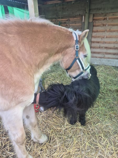 Donkey Kong ist mit 2 schönen Farben ausgestattet, Roan Blue und im Winter kompletter Rappe. Er ist super sozial und verträglich mit allen, er steht mit einem Haflinger im Offenstall. Er steht entspannt da während ditekt neben ihm ein Karnevalsumzug läuft oder Silvester im vollen Gange ist. Null typisches Hengst verhalten, hat aber bereits gedeckt. Deckt im "Wiesensprung". Pro Tag, pro Stute 5€ für Futter. Sie werden dann vom Haflinger abgetrennt damit sie ihre Ruhe haben.