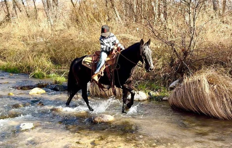 ONLINE AUCTION Place your bids at www.PlatinumEquineAuction.com Starting Bid $3500 Auction ends January 19th, 2025 Need a new saddle? Check out White Rock Saddles on our website or Facebook! Bandit is a 12 year old grade Missouri Foxtrotter gelding standing 14hh. This jet black, stunning gelding is absolutely safe for every level rider of any age and will cover some country! Bandit will set a smooth quick gait to get you where you need to go, or stroll on through town with ease! Not only is this gorgeous gelding an absolute blast to ride through town, he will go absolutely any direction you point him outside. Cruise on through rough rocky terrain, up and down steep mountainous country, venture through the thick brush, cross flowing rivers, or just mosey on down the trail. You name it and Bandit will take you through it without batting an eye. We’ve had kiddos and riders of all levels ride Bandit and he has taken great care of all of them. Bandit is absolutely safe and gentle for anyone and does move with a sense of purpose. Bandit is not only an absolute blast to ride, but he’s also an absolute gentlemen! Bandit is good to groom, saddle, bridle, bathe, and shoe! Transport can easily be arranged anywhere in the US!!! Located in Camp Verde, AZ. Contact D/C Equine Services Natasha 928-460-2625 or Dallas 804-822-2233. ONLINE AUCTION Place your bids at www.PlatinumEquineAuction.com Starting Bid $3500 Auction ends January 19th, 2025 Need a new saddle? Check out White Rock Saddles on our website or Facebook!