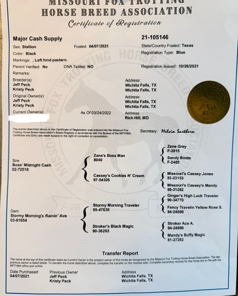 "AVAILABLE ON ONLINE HORSE AUCTION AT www DOT MagicHorseAuction DOT com BIDDING OPEN NOW thru TUESDAY | AUGUST 5TH! - BUY IT NOW AVAILABLE! *Final price will be determined on auction site* CONSIGNOR CONTACT INFO: 4Ps Horses 940-882-0269 LOCATION: Wichita Falls, TX "Major is a 4yr old Missouri Foxtrotter gelding that stands 15.2h. He is a product of the 4Ps Horses breeding and training program in Wichita Falls Tx. If you have been looking for an all around guaranteed horse for the whole family here he is! Major is more than just a trail horse… he is a companion, a trusted ranch horse, a horse that will put smiles on children’s faces. Major is the poster horse for a family horse. Major has been on trails, through town and heavy traffic, and been desenthisized with bicycles, motorcycles and atv’s. Major is a more whoa than go type of gelding, but when you ask him to gait he will give you it with excellence!! He has a phenomenal flat foot walk, trail walk, foxtrot and canter! We are very proud to offer Major as an addition to your family. You can own him with confidence knowing he is safe, gorgeous and most of all started correctly with a foundation that is dependable and solid. Please call or email for more information Jeff Peck 9408820269 Kristy Peck 3619608301 Kolt Peck 9402496828 Foxtrot@4pshorses.com
