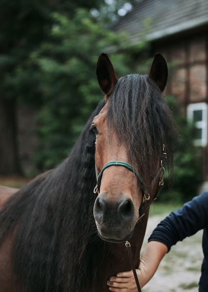 Herzenspferd sucht Herzensmensch mit guter Luft zum Atmen! Ari ist ein mongolisches Wildpferd, 9 Jahre alt und 1,38m groß. Ich habe ihn letztes Jahr gerettet, da er keinen Menschen an sich ranlassen wollte und eingeschläfert werden sollte. Schnell wurde klar: er hat nie gelernt die Menschen und ihre Welt zu verstehen. Doch das gehört jetzt der Vergangenheit an. Ari wiehert, sobald er seinen Menschen von Weitem sieht und möchte immer gefallen. Wenn er Vertrauen gefasst hat, geht er für seinen Menschen durchs Feuer. Er ist ein super motiviertes, feines und neugieriges Pony geworden, was nun seinen Menschen sucht, bei dem er die Nummer Eins sein darf. Ari kennt Bodenarbeit, Gelassenheitstraining, Longieren und erste Anfänge der Freiarbeit. Auch ein paar zirzensische Lektionen, wie "Lächeln", "Küsschen geben" und "Check geben" beherrscht Ari und hat viel Freude daran. Spaziergänge alleine und in der Gruppe sind kein Problem. Auch geht er als Handpferd im Schritt ins Gelände. Mit Ari möchte ich nun erste Schritte Richtung Anreiten gehen. Er kennt bereits Longiergurt, Reitpad, Sattel und verschiedene Gegenstände auf seinem Rücken. Ein paar Mal saß ich auch schon auf seinem Rücken, wobei er da gerade noch etwas unsicher ist. Wenn er genug Zeit und Einfühlungsvermögen bekommt, wird er mit Sicherheit ein ganz tolles Reitpony. Auch Medical Training ist Ari nicht fremd. Er hat einen Equidenpass, ist gechipt, Tetanus geimpft und wurde regelmäßig entwurmt. Er läuft barhuf und lässt sich brav die Hufe bearbeiten. Er lässt sich ganz lieb verladen und fährt entspannt zu zweit und alleine Hänger, sodass wir sogar schon auf unserem ersten Kurs auswärts waren. Leider hat Ari hochgradiges Equines Asthma. Aktuelle Ergebnisse der Bronchoskopie vom August inkl. BAL Werte und Empfehlungen zur Haltungs-und Fütterungsoptimierung aus der Klinik liegen vor. Ich suche für Ari ein Zuhause an der Nordsee oder in einem guten Asthmatiker-Stall. Ich wünsche mir für Ari einen feinfühligen Menschen, der Ari's Vergangenheit sieht, mit ihm im Hier & Jetzt ist und eine gemeinsame Zukunft voller Liebe und schönen Abenteuern vor Augen hat. Einen Menschen, der Spaß an der Ausbildung hat und dem der Prozess wichtiger ist, als das Ziel. Vielleicht sogar einen Menschen, der schon Wildpferde Erfahrung hat oder sich mit ganzem Herzen darauf einlassen möchte. Ich sehe in Ari viel Potential und kann mir ihn in alle möglichen Richtungen vorstellen. Als Freizeitpony für leichte Erwachsene, als Packpferd für Säumer, oder auch als Coaching-Pferd für Persönlichkeitsentwicklung, da er ein sehr feines Pony ist, das extrem viel spiegelt. Ari wird nur verkauft, wenn ich das Gefühl habe, dass ich seinen "für-immer-Menschen" gefunden habe und es zu 100% passt. Er wird nicht an Händler, Schulbetriebe und Reittherapien verkauft! Wenn Ari dein Interesse geweckt hat, dann melde dich doch gerne bei mir. Ich möchte dir alles ehrlich über Ari erzählen, damit alle glücklich werden können :-) P.s.: Ari's Weg kannst du auf Instagram unter "wildepferde.sanftewege" in den Story Highlights und Beiträgen verfolgen.