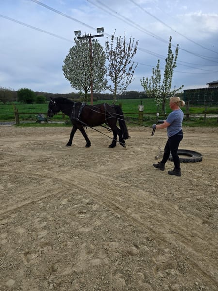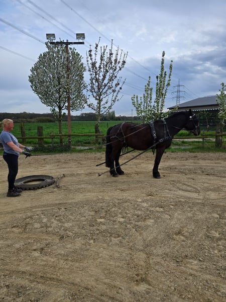 !!!!Not suitable for beginners, requires a confident and consistent handler!!!! After careful consideration, I am offering my gelding (Hungarian Warmblood, possibly Friesian cross or similar, no pedigree information) for sale. He is 10 years old (will be 11 in December) and stands approximately 1.57 meters. He was acquired with the intention of using him in hippotherapy. However, I have realized that he is simply too tall and also transmits too much movement, which ultimately makes him less suitable for that purpose. Additionally, we haven't quite connected riding-wise, although he is very well-behaved and comfortable to sit. Therefore, I have decided to give both of us the chance to find the "right" horse. He is a calm and somewhat easygoing, perhaps a bit introverted type. I trained him in long reins, and he enjoys it, so I can easily imagine him being driven in harness. He also goes nicely on a trail with a confident horse. He has a great fondness for children. In handling, he needs a consistent but fair handler. He also prefers to be in a home with geldings, with whom he can play. He was kept in a large box with paddock during winter, and in summer, he was on pasture 24/7 without any issues. - Dewormed - Teeth done (September 2025) - Recently seen by the physio - Well-behaved at the blacksmith (barefoot) and veterinarian There is a blood test from October 2024. He has always been healthy during his time with me. Priority over price!!