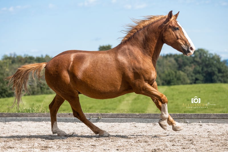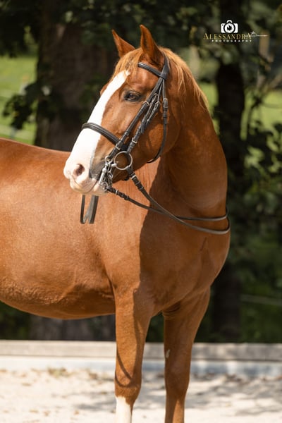 In the client’s name: Makar… …is a colorful, chestnut pony gelding whose heart is truly unmatched in kindness and size. He has a almost magical ability to bring a smile to everyone’s face. With a noble character and a lot of comfort, riding him is an absolute pleasure. His stocky appearance might be deceiving at first glance, but he carries himself with ease, is responsive, and stands quietly at the aids. We see him as the perfect all-rounder and family horse, as he can adapt well to multiple riders of different skill levels, always responds fairly, and can satisfy two to three riders in terms of workload. Makar enjoys working hard and is quickly motivated; the more challenging the task, the more he thrives on it. He can be ridden in a fine four-in-hand, providing an incredible feeling of lightness and allowing his rider to shine. He can also be led by a child in the lead-rein class, and he will look after them. The same applies to trail rides, where he always proves to be confident and reliable. Children can learn to ride safely on Makar and grow with him, but advanced riders will also find plenty to learn from him. Under saddle and in hand, he has been trained in classical dressage and is regularly mobilized and gymnasticized. He is a pro in free work and excels in jumping courses, even preferring the on-site cross-country track. Over the past few years, he has gained extensive and diverse experience in trail riding and hacking. At the farm, he has participated in small performances and clinics, fulfilling the wishes of many riders, for example, helping them pass their riding certificates (up to RA4 show jumping). He is also familiar with typical farm life, including children, dogs, other horses coming and going, and riding in the arena with other horses—all of which he takes very calmly. This unique gelding could make the impossible possible for his family! Makar has a sturdy, stocky build with a broad ribcage, which allows him to cover well. His incredibly smooth gaits make riding very comfortable. Of course, he is well-socialized and lives in a herd in an open stable. He has been regularly dewormed and presented to the farrier (barefoot). If you have a horse you are considering selling, please contact us. We buy, take in part exchange, or market your horse until the final sale. More information at www.wow-pferd.de