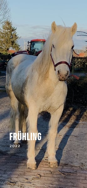 Verkaufe meinen charmanten Schimmel-Wallach, geb. 2012, mit einem Stockmaß von circa 158 cm. Dieses freundliche Kleinpferd eignet sich hervorragend für die Freizeitgestaltung und ist ideal für Reiter, die ein zuverlässiges und angenehmes Pferd suchen. „Fredi“ ist stets gesund und hat ein angenehmes, beruhigendes Wesen. Er liebt es, mit Mensch und Hund oder auch den Weidekumpels durch Wald und Wiesen zu spazieren, genießt es merklich und strahlt eine ungeheure Ruhe aus - gerade auch auf Kinder! Er kennt jegliche Form von Landwirtschaftsgeräten und Fahrzeugen, wobei eine Mülltonne schon mal unheimlich sein kann ;-) Als rangniedriger Genosse ist er sehr entspannt mit allem, was um ihn herum passiert. Aktuell ist er eine Weile nicht bewegt worden und stand mit seinen Stuten 24/7 im Offenstall/Weide, sodass er ein wenig bequem geworden ist. Gern können wir einen Kennenlerntermin vereinbaren, er freut sich bestimmt, wenn sich jemand findet, der mehr Zeit für ihn hat, als ich..