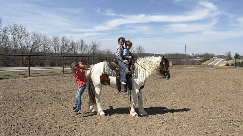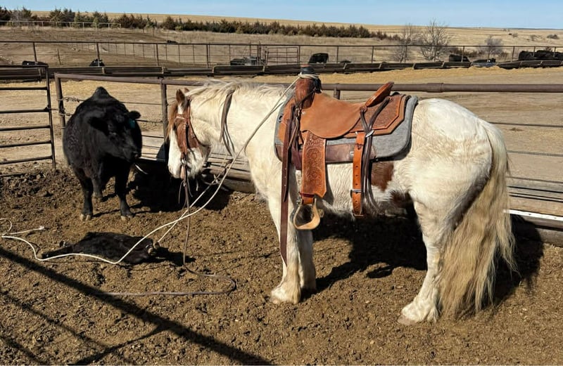 "AVAILABLE ON ONLINE HORSE AUCTION AT www DOT PlatinumEquineAuction DOT com BIDDING OPEN NOW thru SUNDAY | MAY 3RD! *Final price will be determined on auction site* CONSIGNOR CONTACT INFO: Heather Stark 660-953-1476 LOCATION: Princeton, MO JIMMY The kind they all ask for — safe, versatile, and absolutely eye-catching. Jimmy is a 4-year-old Gypsy cross pony standing 13.2 hands tall, and he is truly the total package. He is absolutely stunning with his long, flowing mane and tail, and a kind, gentle expression that draws attention everywhere he goes. Jimmy is 100% sound and has that in-your-pocket personality everyone loves — easy to catch, easy to be around, and a true barn favorite. The kids absolutely adore him, and he genuinely enjoys people. He is as versatile as they come. Jimmy has been trail ridden extensively, hauled on overnight camping trips, and spent two months checking and doctoring cattle. He’s been started in the breakaway, can hold one at the horn, and has experience with cattle sorting, pushing cattle, and brandings. Jimmy has been used as a lesson pony and has been ridden by riders of all ages and experience levels. He is safe, steady, and forgiving. He will: • Ride out alone or in a group • Go through timber, water, and cross creeks • Ride confidently along traffic • Go over small jumps • Ride double with ease • Stay broke even with time off On the ground, Jimmy is just as solid: • Stands for the farrier, grooming, and tacking • Loads and hauls great • Excellent ground manners • Can be kept in a stall or turned out with others We’ve done just about everything with Jimmy, and he continues to prove himself to be a dependable, all-around pony. He’s even been started on laying down. Jimmy is truly one of a kind, and we are excited to find him a loving, forever home where he can continue to be a safe, fun, and reliable partner for his next family. Located in Princeton, Missouri Call or text Heather at 660-953-1476 Shipping available nationwide