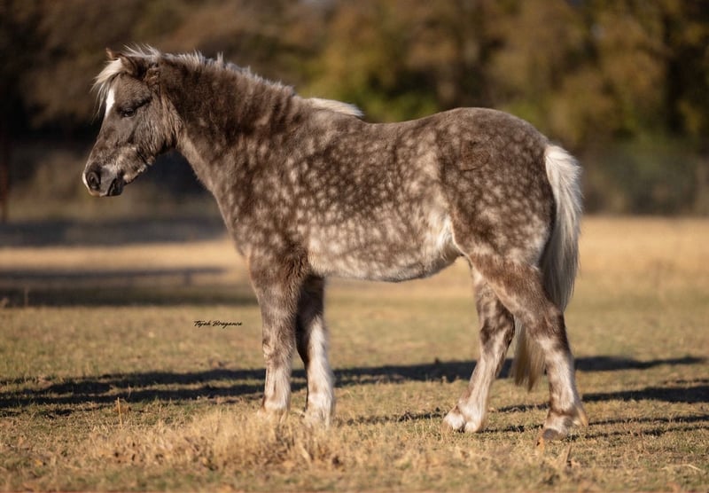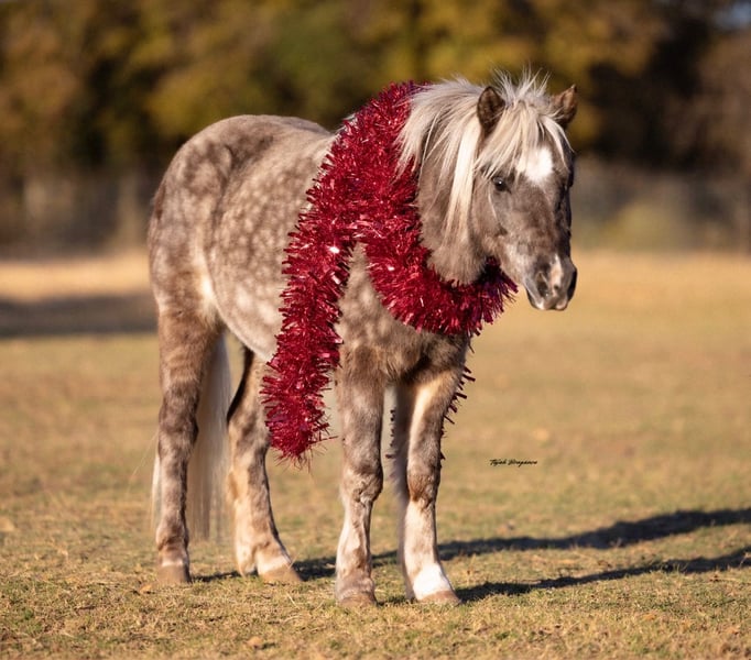 🎁 𝐈𝐍 𝐓𝐈𝐌𝐄 𝐅𝐎𝐑 𝑪𝒉𝒓𝒊𝒔𝒕𝒎𝒂𝒔 🎁 Happening now thru TUESDAY | DECEMBER 9th - Available EXCLUSIVELY on Ponybid's website! For more details and to register visit: www.Ponybid.com CONSIGNOR CONTACT: Honor Williams Ponies 817-901-4068 LOCATION: Weatherford, TX BREED: Pony REGISTERED: No COLOR: Silver Dapple HEIGHT: 40" AGE: 5 GENDER: Gelding Dapples is a gorgeous 5 year old silver dapple gelding with the cutest features. His color is absolutely stunning year round. He is as gentle as they come with good ground manners and a kind personality. He is a great lead line pony but will also go out on his own with a little more encouragement. He can also pull a cart/wagon. He has been rode bareback and with a saddle. He has been rode everywhere from being outside gathering cattle to inside the arena. He has gone to local events and nothing has bothered him. He is suitable for beginners all the way to more advanced riders. Dapples is not spooky or watchy. He has a gentle, go with the flow attitude. He gets along with others and checks all the boxes! We have three kids, all under 8 years old and Dapples has been perfectly safe with all of them. He does not get fresh. He stands tied well, loads and unloads with ease, is good to trim, good to bathe, and is easy to catch anywhere. No bad habits