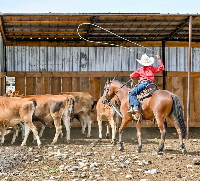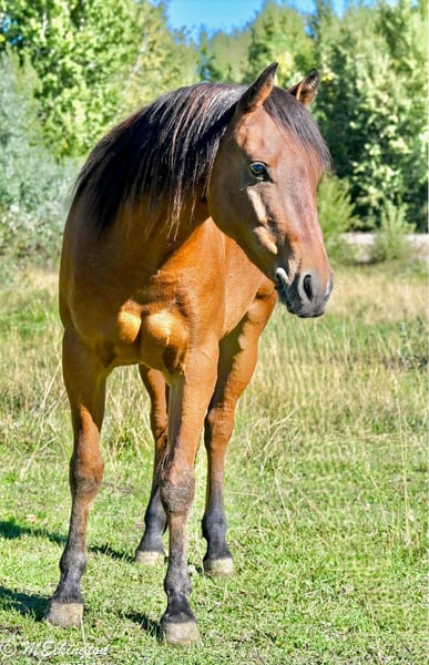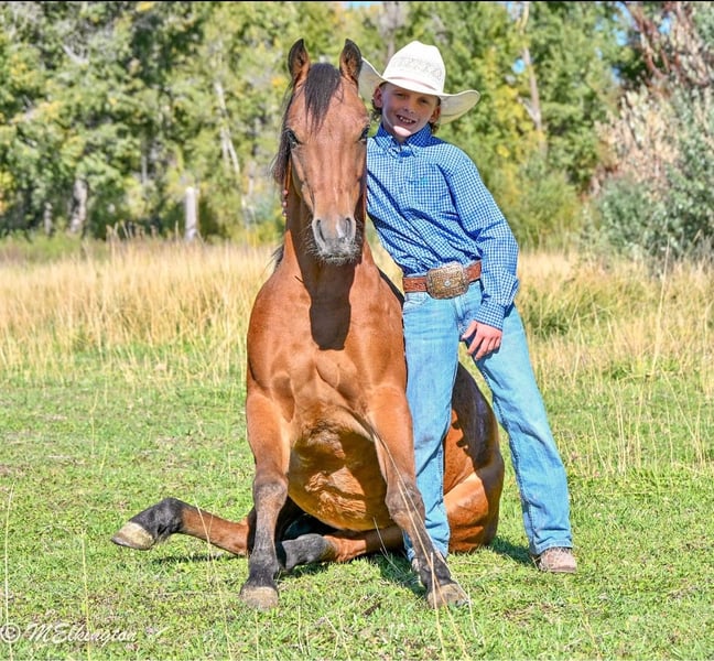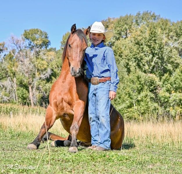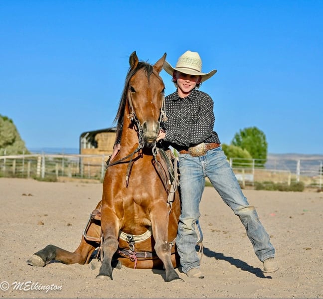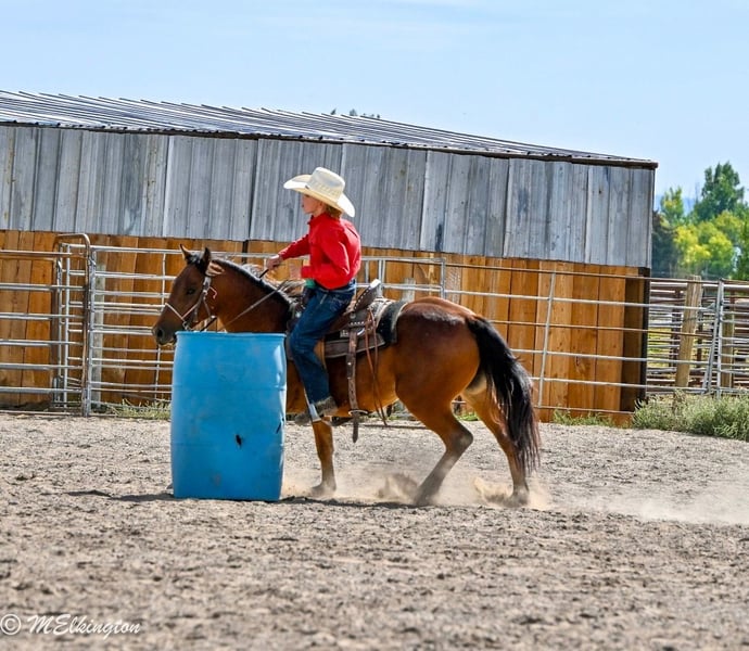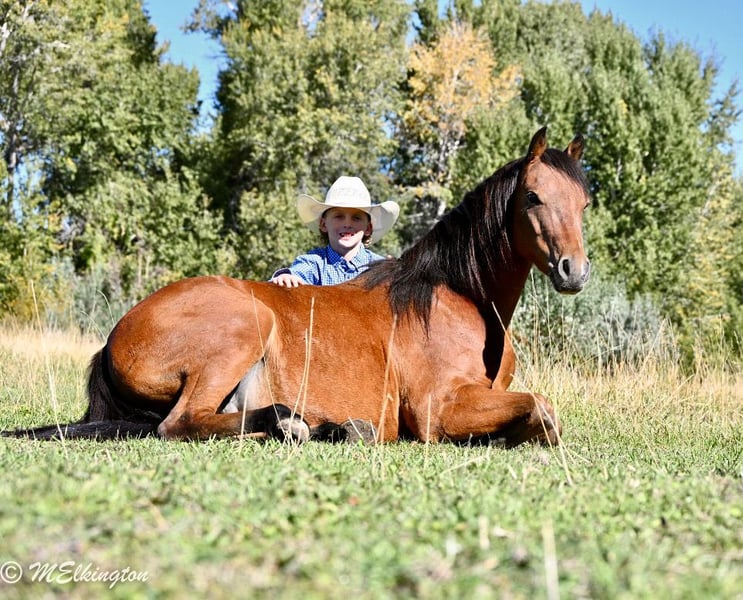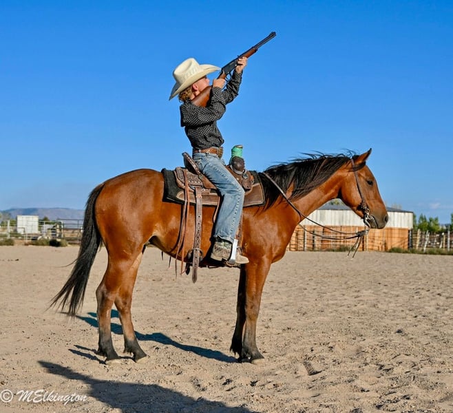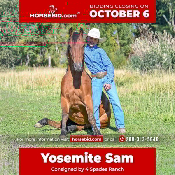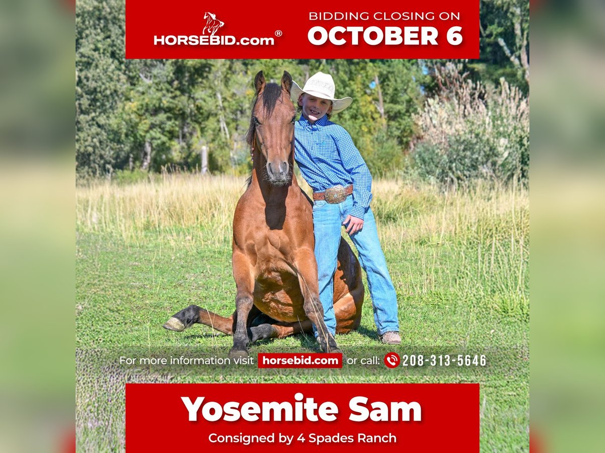 🍂 𝓐𝓾𝓽𝓾𝓶𝓷 𝑨𝑳𝑳 𝑺𝑻𝑨𝑹 𝑳𝑰𝑵𝑬𝑼𝑷 🍂 Happening now thru MONDAY | OCTOBER 6th - Available EXCLUSIVELY on HorseBid's website! For more details and to register visit: www.Horsebid.com CONSIGNOR CONTACT: 4 Spades Ranch 208-313-5646 LOCATION: Rigby, ID BREED: Pony REGISTERED: No COLOR: Bay HEIGHT: 13.1 AGE: 5 GENDER: Gelding Yosemite Sam is one of the fanciest all-around Ponys you will ever find he check so many boxes barrels poles roping healing go on the trails pack a flag during your county rodeo all, shoot off of him, works a cutting flag all wrapped in a package that is 13 one hands and five years old. If you are raising little cowboys and cowgirls this is it coolest adventure buddy he’s even been trapping all of our neighbors skunks not afraid of dead animals he’s been shot of off of and even knows some tricks like laying down sitting like a dog still working on fetch Don’t tell Yosemite he’s a pony, he acts & rides like a big horse would. He is absolutely ONE HAND BROKE with a good stop, back up, side pass, short lope and the list goes on! He is light, correct, and will do anything you ask of him. Yosemite has many miles in and out of the arena. He’s been used in Junior Rodeos and is no stranger to chaos! He has been patterned on the barrels and poles and has been used in the goat tying at our local Jr rodeo heeled steers out of the box will wear out a pen of goats and your heel o matic. This guy will give your kiddo a shot every time Yosemite has been hauled and entered in youth rodeos and play-days. Take him out on the trails. He will be your best friend and companion when youre out trapping. Shoot the 22 off of him and go gather up your traps and haul your loot home,he’s ready for your next BIG adventure. He will lay down and sit up like a dog and let your littles love on him all day long. He is just as solid and sane out on the trails as he is in any arena. He’s been cowboyed on and moved thousands and cows through the mountains. This pony crosses water, tarps, logs, teeter totter, tires and he rides in town through loud traffic, gun shots & more . He does great around dogs, goats, and vehicles! The greatest thing he has achieved is made my cowboys who they are today, while keeping them safe. That’s the best gift I could ever ask for, for my kids to be safe while having a childhood filled with crazy adventures. He has never bucked, bit or kicked while with us. He’s been Blaze’s main pony and he has put his whole heart and soul into making Sam atop notch all around pony. You can put him in a pasture or a stall. He gets along great with other horses. Yosemite loads, ties and bathes like a champ. He loves to share a Diet Coke or drink out of the hose. Ride him, brush him or braid him all day – he loves it!!! give us a call and we’ll tell you anything you want to know about him.