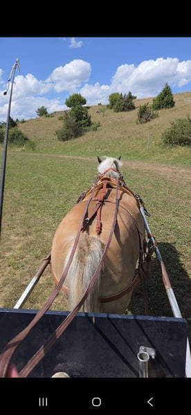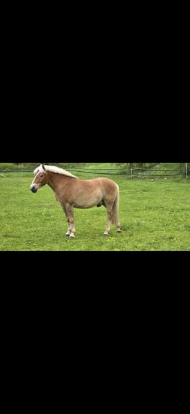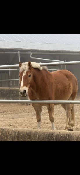 Ist am 20.6.2019 geboren, hat ein Stockmaß von ca. 1,36 m. Aktuell wird er als Beisteller abgegeben, da er sich im September eine Sehnenverletzung am Bein zugezogen hat. Seitdem steht er im Offenstall, um die Verletzung in Ruhe auszukurieren. Vor seiner Verletzung wurde er brav und zuverlässig im Gelände geritten und auch 1 und 2 spännig Kutsche gefahren. Außerdem geht er sehr gerne als Handpferd mit – dabei ist er stets anständig, ruhig und zuverlässig. Typisch Pony bringt er manchmal einen kleinen Dickkopf mit, weshalb er eine konsequente, liebevolle Hand braucht. Wer sich darauf einlässt, bekommt aber ein echtes Goldstück: Er ist sehr verschmust, neugierig, sucht stets Aufmerksamkeit und genießt den Kontakt zum Menschen sehr. Zu beachten ist, dass er Angst vor Spritzen hat – hier braucht man Geduld und Einfühlungsvermögen. Grundsätzlich sehr verträglich wenn er geärgert wird weiß er sich jedoch zu wehren. Ist kein Haflinger auch wenn er so aussieht. Vater ist ein Lewitzer Fuchsscheck und Mutter eine Braunes Pony Stute. Platz vor Preis