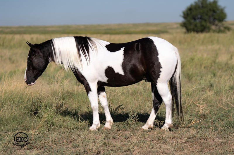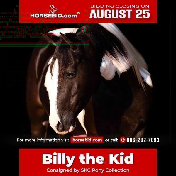 ⭐️ 𝐀𝐔𝐆𝐔𝐒𝐓 𝓐𝓵𝓵 𝓢𝓽𝓪𝓻 𝓛𝓲𝓷𝓮𝓾𝓹 ⭐️ Happening now thru MONDAY | AUGUST 25th - Available EXCLUSIVELY on HorseBid's website! For more details and to register visit: www.Horsebid.com CONSIGNOR CONTACT: SKC Pony Collection 806-282-7093 LOCATION: Canyon, TX BREED: Pony REGISTERED: No COLOR: Paint HEIGHT: 13.3 AGE: 7 GENDER: Gelding This adorable 13.3 hand black-and-white Paint Pony is the perfect junior rodeo step-up mount. Handy and broke, he knows his way around the arena and will take a young rider through the barrels, poles, goats, and breakaway with ease. Not just an arena horse, this pony has also been used outside to doctor cattle and has covered every aspect of ranch work, making him versatile and dependable wherever he goes. With his flashy color and cute build, he turns heads everywhere, but it’s his personality that truly shines. He has a huge, fun-loving character, absolutely adores attention, and is always eager to be with his people. He’s gentle with kids, easy to catch, and has perfect manners on the ground and under saddle. Whether it’s in the rodeo pen, working outside, or just being loved on in the barn, this pony is as good as they come—safe, broke, and full of heart.