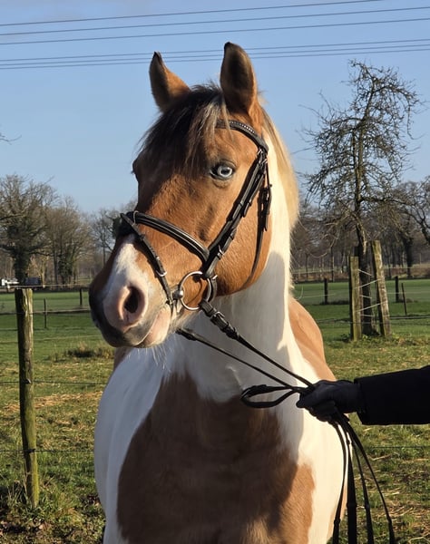 Onze ponyhengst Kalli is een ruin van ongeveer 152 cm. Ja, hij dekt uitstekend grote ruiters af, een pony met een goede basis. :-) Kalli heeft twee blauwe ogen, wat hem zo uniek maakt. Kalli is een charmant en pittig type. Als typische ruin is hij speels en knabbelt graag aan je. ;-) Tot nu toe was Kalli een recreatiepony, hij is goed op E-niveau. Alles is nog verder te ontwikkelen, ook springen vindt hij leuk. Daarnaast gaat hij regelmatig het buitengebied in. Kalli is licht aan de teugel en wat echt benadrukt moet worden: hij laat zich heel fijn rijden (rugsparend). Tot nu toe is Kalli altijd gezond geweest, hij is altijd goed verzorgd en verwend. Vanwege privéomstandigheden wordt hij met pijn in het hart verkocht. Voor meer informatie, we horen graag van je via: 0177/2721831.
