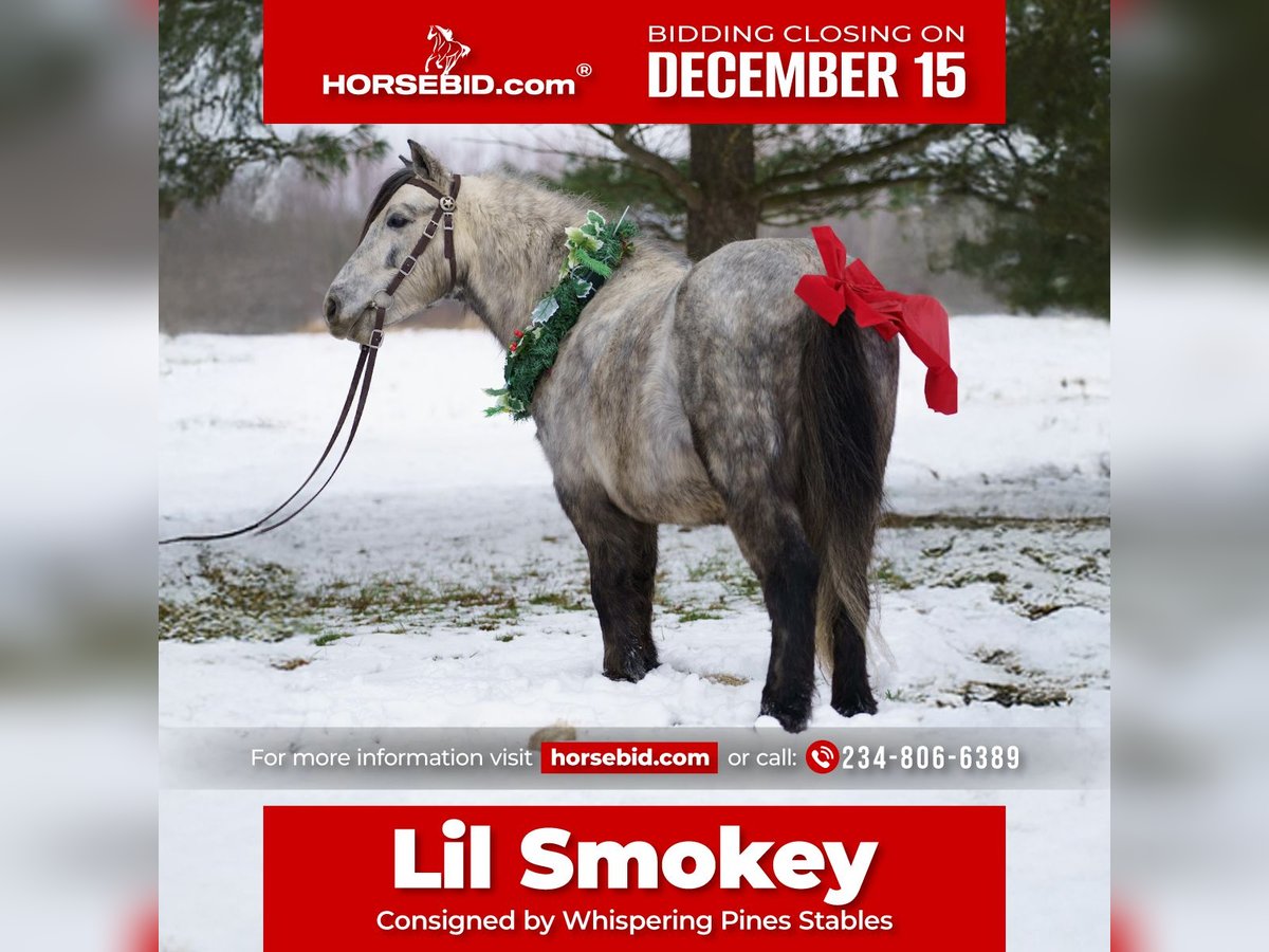 🎄𝐓𝐇𝐄 𝑯𝒐𝒍𝒊𝒅𝒂𝒚 𝐂𝐋𝐀𝐒𝐒𝐈𝐂🎄 Happening now thru MONDAY | DECEMBER 15th - Available EXCLUSIVELY on HorseBid's website! For more details and to register visit: www.Horsebid.com CONSIGNOR CONTACT: Whispering Pines Stables 234-806-6389 LOCATION: Bristolville OH BREED: Pony REGISTERED: No REGISTERED NAME: Smokey COLOR: Dapple gray HEIGHT: 45 in AGE: 7 GENDER: Gelding Meet Smokey!!! Wow!!! What a beautiful dapple gray color this 45 inch 7 yr old gelding has!! The most incredible pony we have ever had in our barn! From his gentle kind spirit to his sweet temperament, he is any child’s dream come true! He is the perfect pony to be around! He is extremely well broke and will take care of any rider on his back, he is for the well seasoned riders, as well as beginners! He has been an awesome pony for beginners to learn the ropes of riding on our farm and has been an absolute favorite!! He was always the first pick that the children wanted to ride!! he is steady, quiet, dependable, and has a gentle confidence that all riders love! Smokey is a very versatile pony! He rides western and enjoys going after a cow, he would make a cool little ranch pony! He would also look beautiful under English saddle! He has been on trails, through the creeks, over the logs, and he loves every bit of it! he will hitch very nicely to a cart and will stand to hitch until you are completely done , Then he will take you for a wonderful ride on beautiful sunny days, or on a snowy winter day hitch him up to the sled and he will help you make many family memories in the snow! When using him for pony rides at festivals or events, he has been an absolute favorite to all the children, and he was always a true gentleman and took care of his riders. I can’t say enough about this great trustworthy pony! He is a family pony and will be great for any age!! It was a hard decision to offer him up for a new home! If our daughter wouldn’t already have her personal pony, he would be staying on our farm! He will walk , trot,canter and go through obstacles without a fuss. Great manners in the barn, will stand to saddle, harness, etc. he will trailer well and picks up his feet, Just broke ,broke ,broke!!! He will be a great addition to any family!! If you want any more info don’t hesitate to contact me at 234 806 6389
