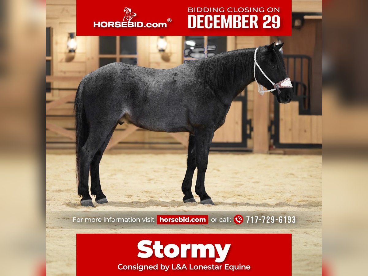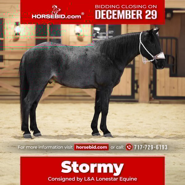 ⚜️𝐓𝐇𝐄 𝓗𝓮𝓻𝓲𝓽𝓪𝓰𝓮 𝐖𝐢𝐧𝐭𝐞𝐫 𝓒𝓵𝓪𝓼𝓼𝓲𝓬⚜️ Happening now thru MONDAY | DECEMBER 29th - Available EXCLUSIVELY on HorseBid's website! For more details and to register visit: www.Horsebid.com CONSIGNOR CONTACT: L&A Lonestar Equine 717-729-6193 LOCATION: Needmore, PA BREED: Pony REGISTERED: No REGISTERED NAME: Stormy COLOR: Blue Roan HEIGHT: 13.1 AGE: 8 GENDER: Gelding If you’ve ever wanted a pony that does it all and steals your heart, here he is. This 8-year-old, 13.1 hh blue roan is truly one of a kind — versatile enough to ride both English and Western, calm enough to make every rider feel confident, and sweet enough to become instantly part of the family. He’s steady and smooth in the arena or on the trail, picks up both leads effortlessly, and has a kind, willing attitude that makes every ride a joy. Curious and adventurous, he loves new experiences and approaches everything with a confident, calm demeanor. On the ground, he’s just as special: easy to catch, stands quietly for the farrier, grooming, and tacking, and genuinely wants to be with his people. He’s the kind of pony that gives love as easily as he takes direction, making him a best friend, confidence builder, and family favorite all in one. Ponies like this don’t come around often — with his blue roan color, unbeatable temperament, and versatility, he’s truly one of a kind and ready to be someone’s forever pony.